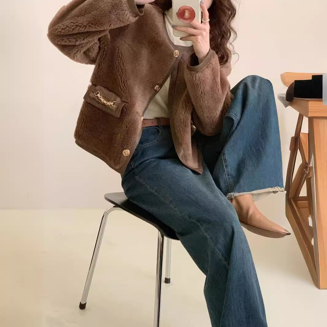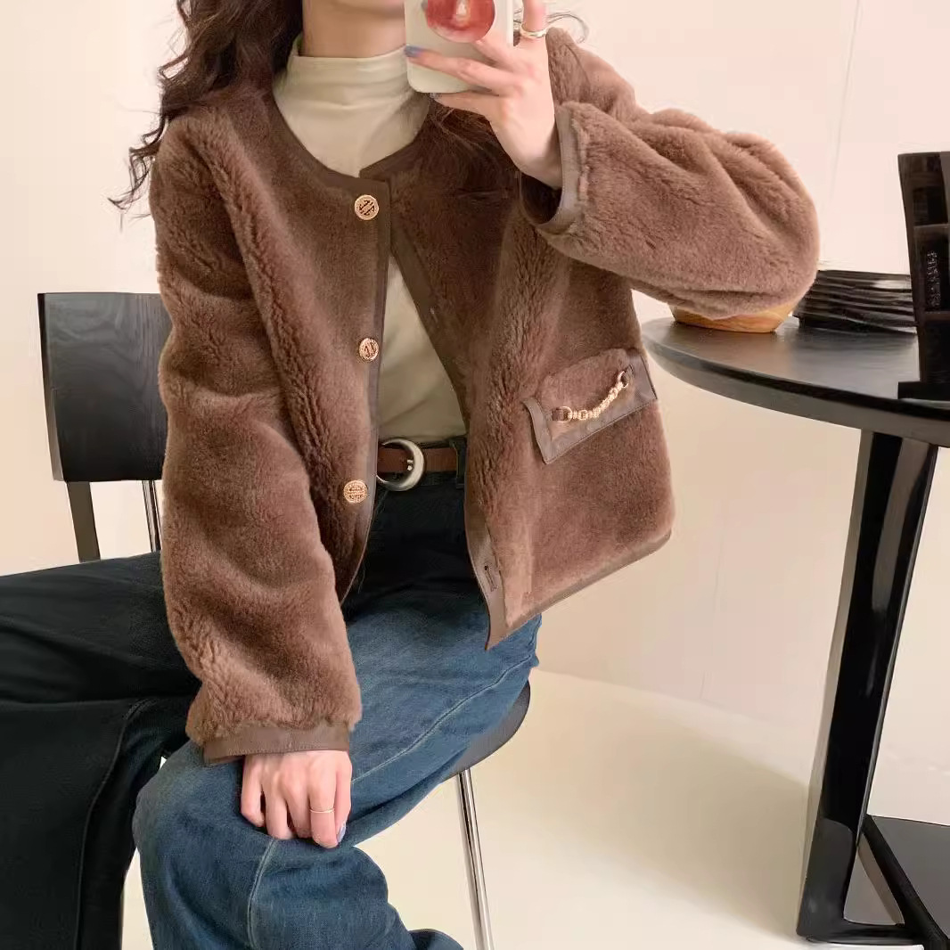 | nameOriginal | 24 autumn and winter sheep sheared grain imitation fur coat lamb wool women's clothing all wool round neck fur one |
