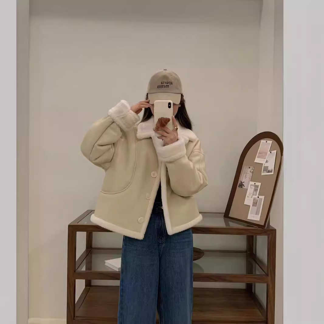 | nameOriginal | 24 autumn and winter sheep sheared grain imitation fur coat lamb wool women's clothing all wool suit collar fur one |