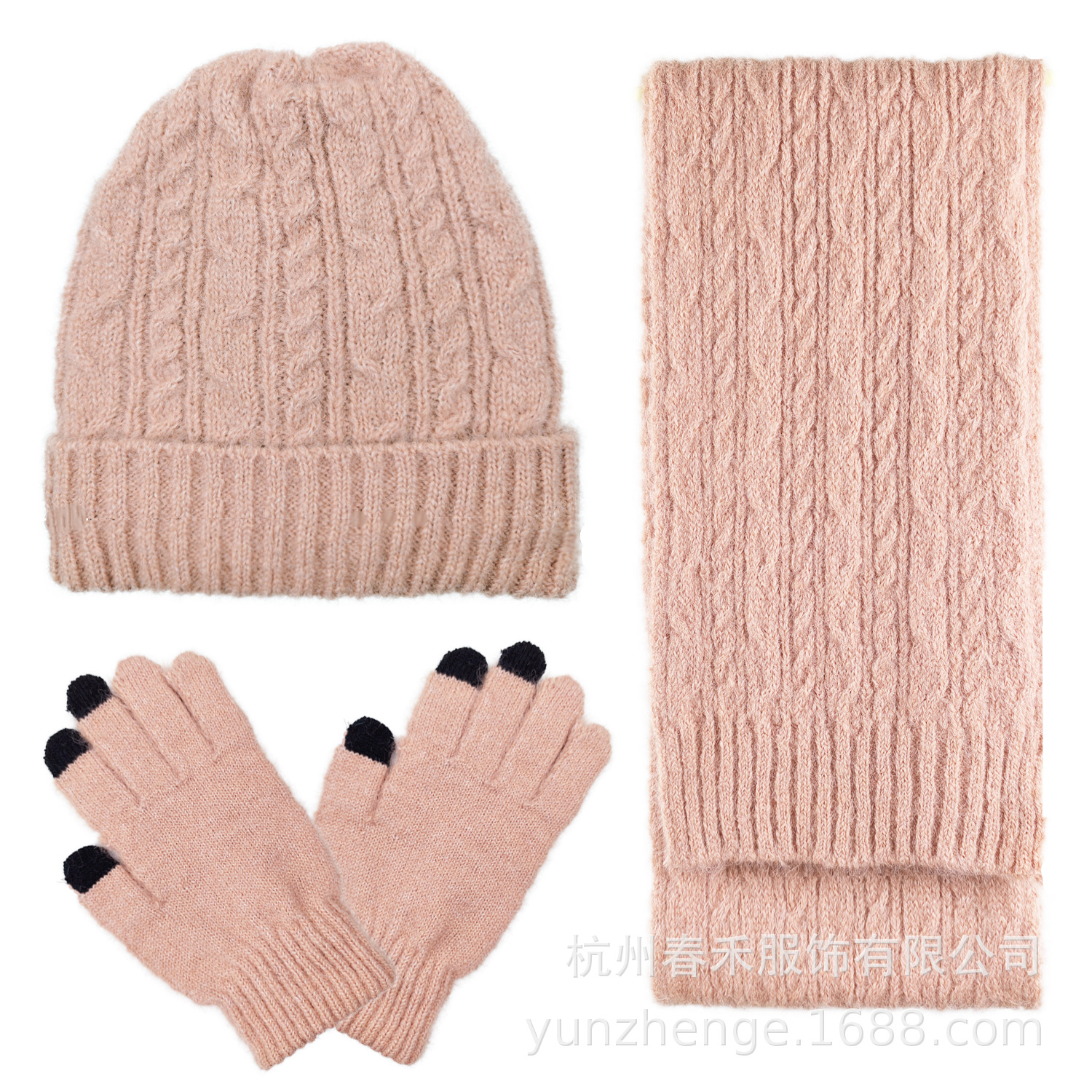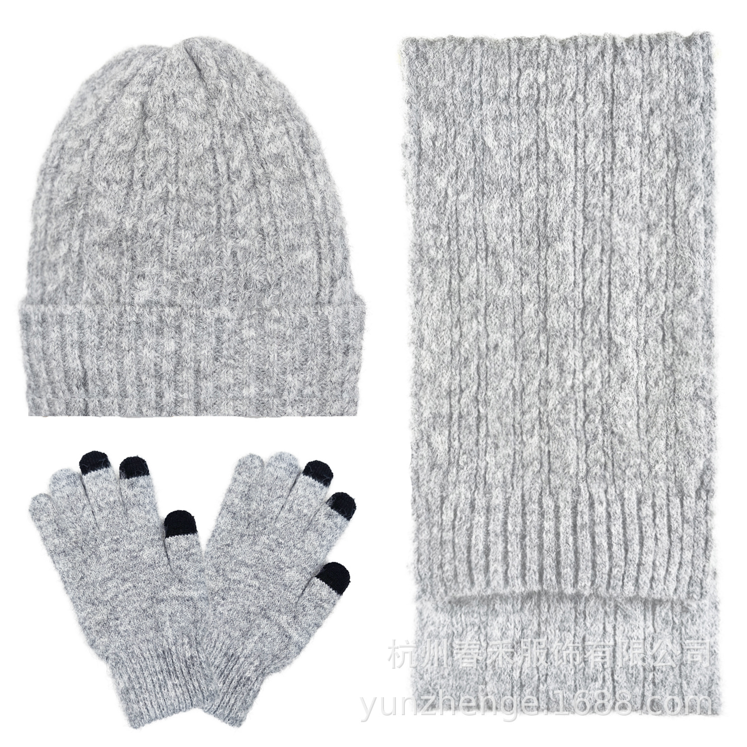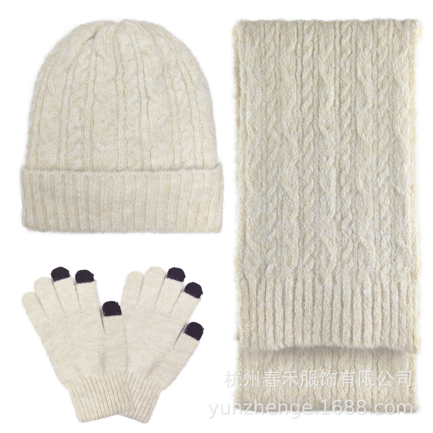 | nameOriginal | 24 cross-border e-commerce 6 color spot alpaca wool men's and women's scarf hat gloves 3 sets plus velvet touch screen |