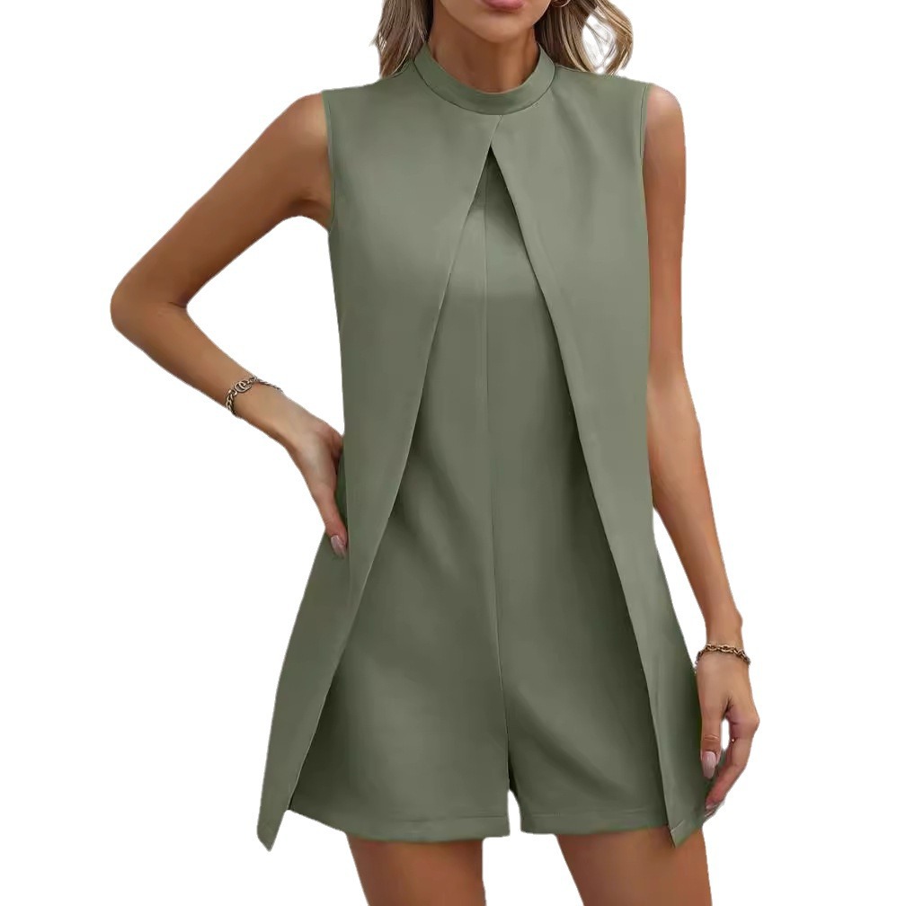 | nameOriginal | 24 Europe and the United States cross-border summer explosion independent station solid color stand collar sleeveless plus size one-part shorts |