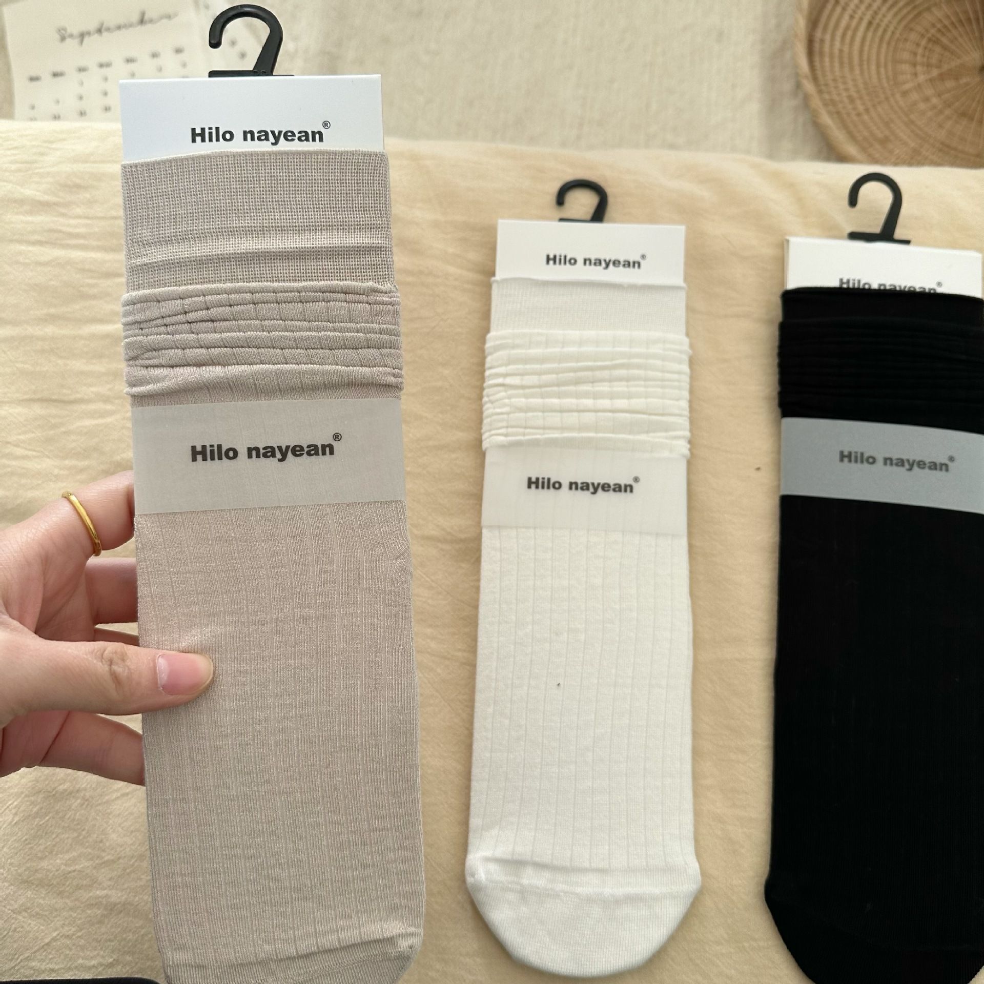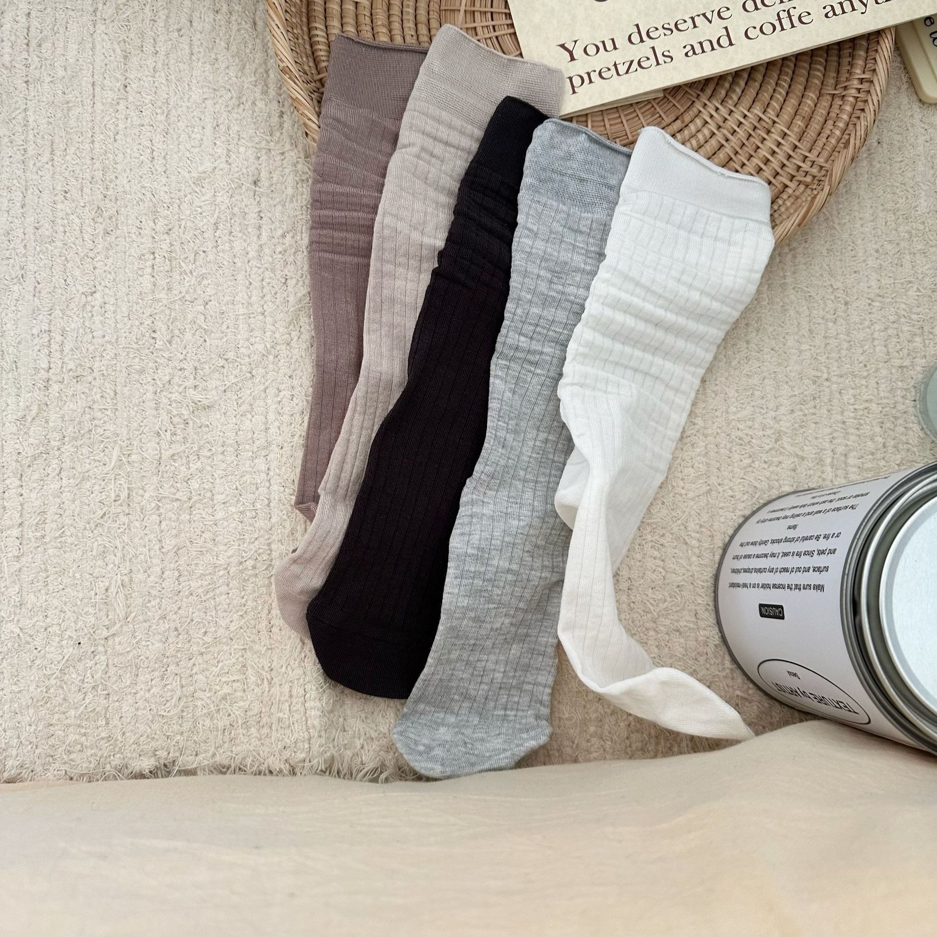| nameOriginal | 24 New chao thin Nanye nayean boneless non-Pilling vertical stripes women's mid-calf socks solid color women's socks |