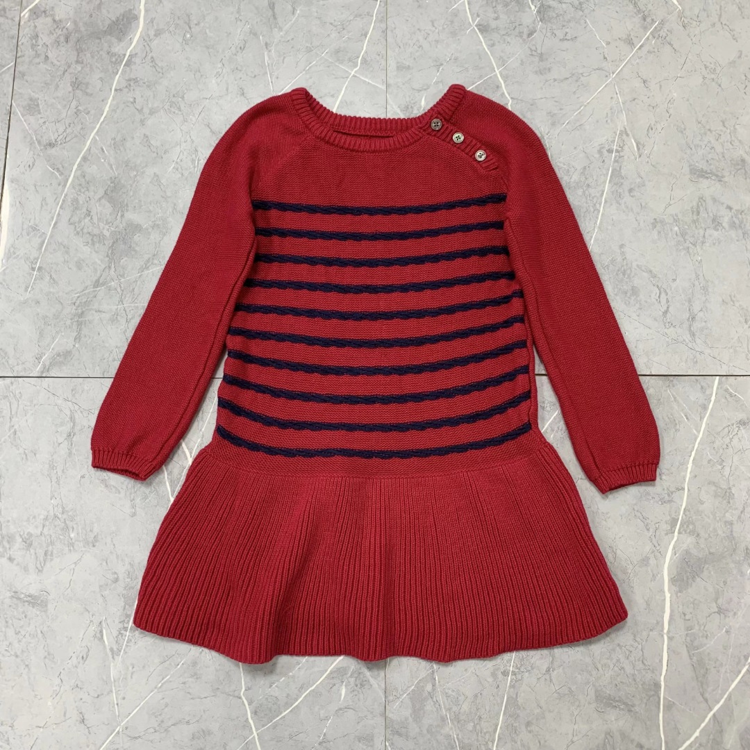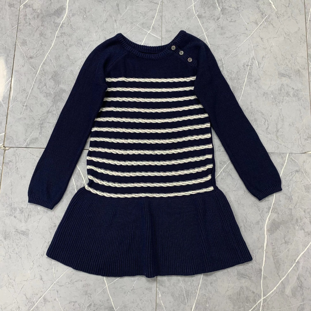 | nameOriginal | 24 New Children's Wear dress Round Neck Striped Contrast Knit dress Academy Style Ruffled Hem Skirt |