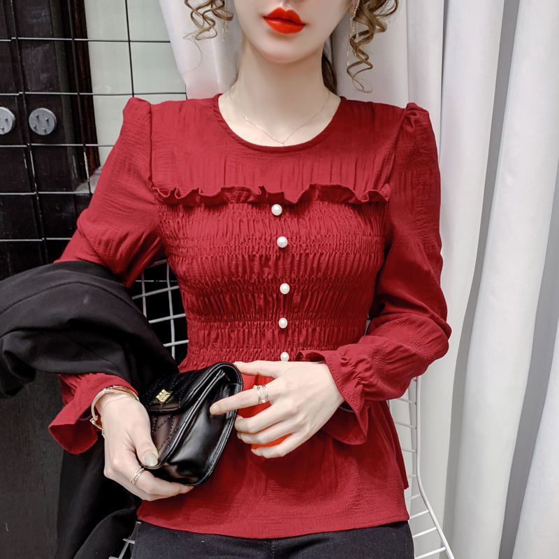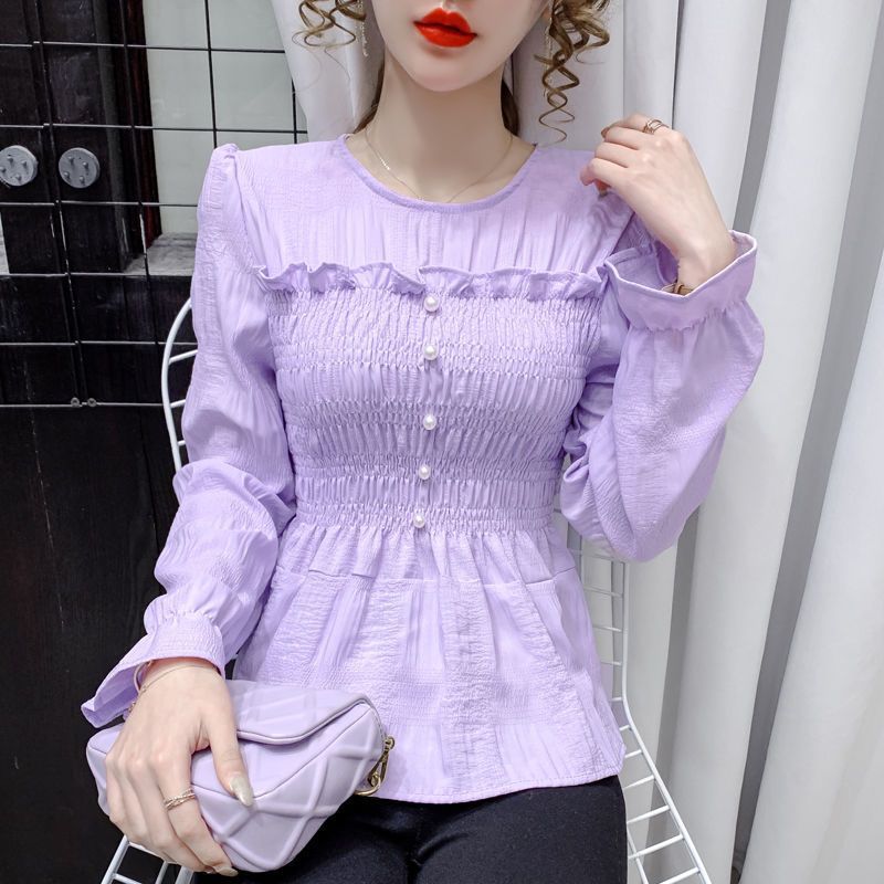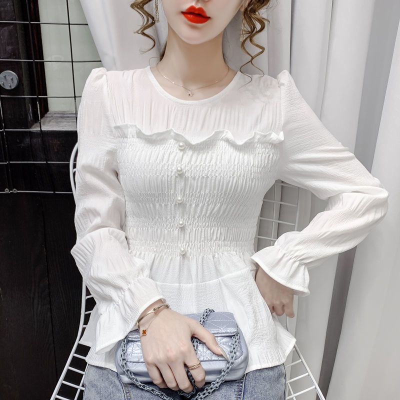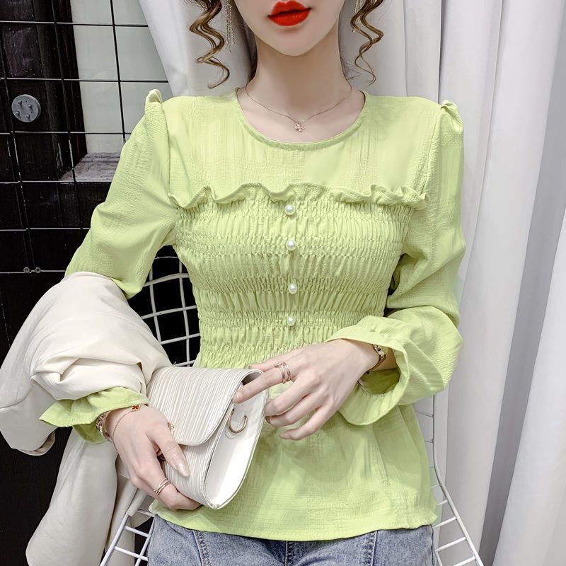 | nameOriginal | 24 new style all-match waist pleated beaded long sleeve chiffon shirt top slim design shirt women's fashion |