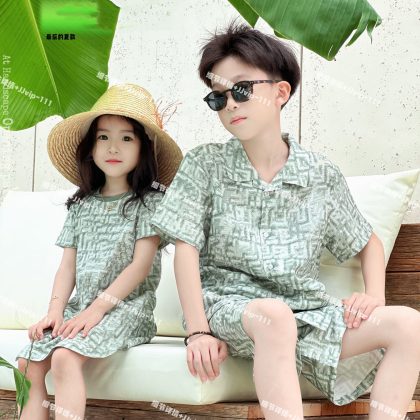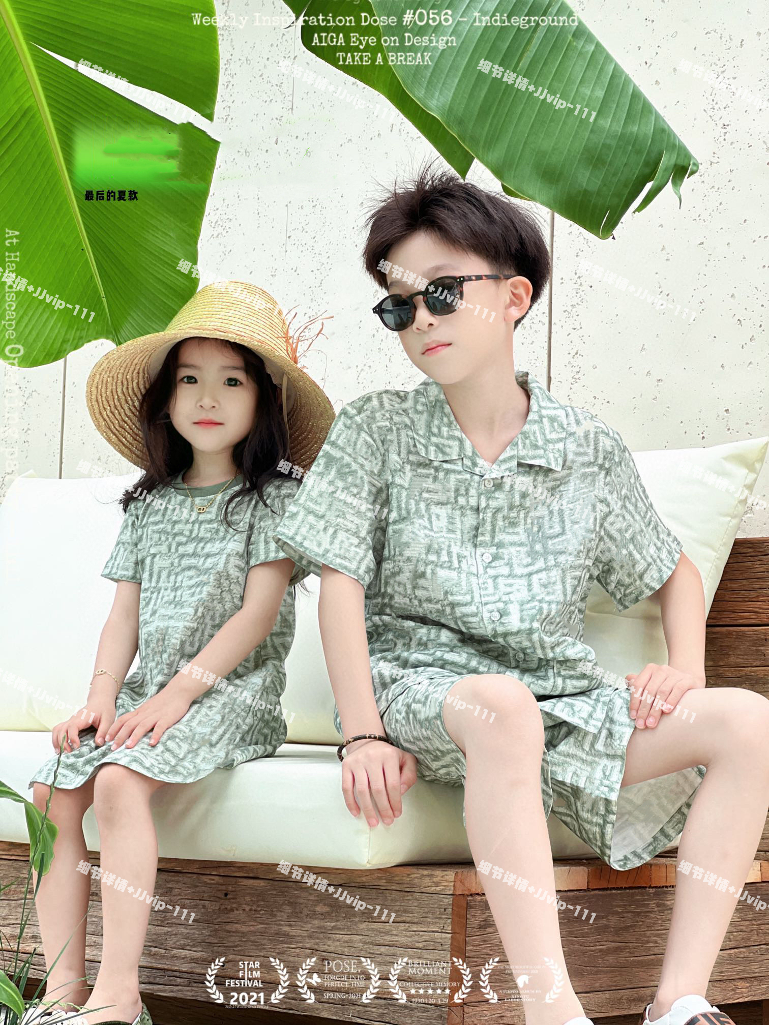 | nameOriginal | 24 new summer children's clothing cool linen presbyopic shirt suit short-sleeved T-shirt holiday style boys and girls brother and sister clothing |