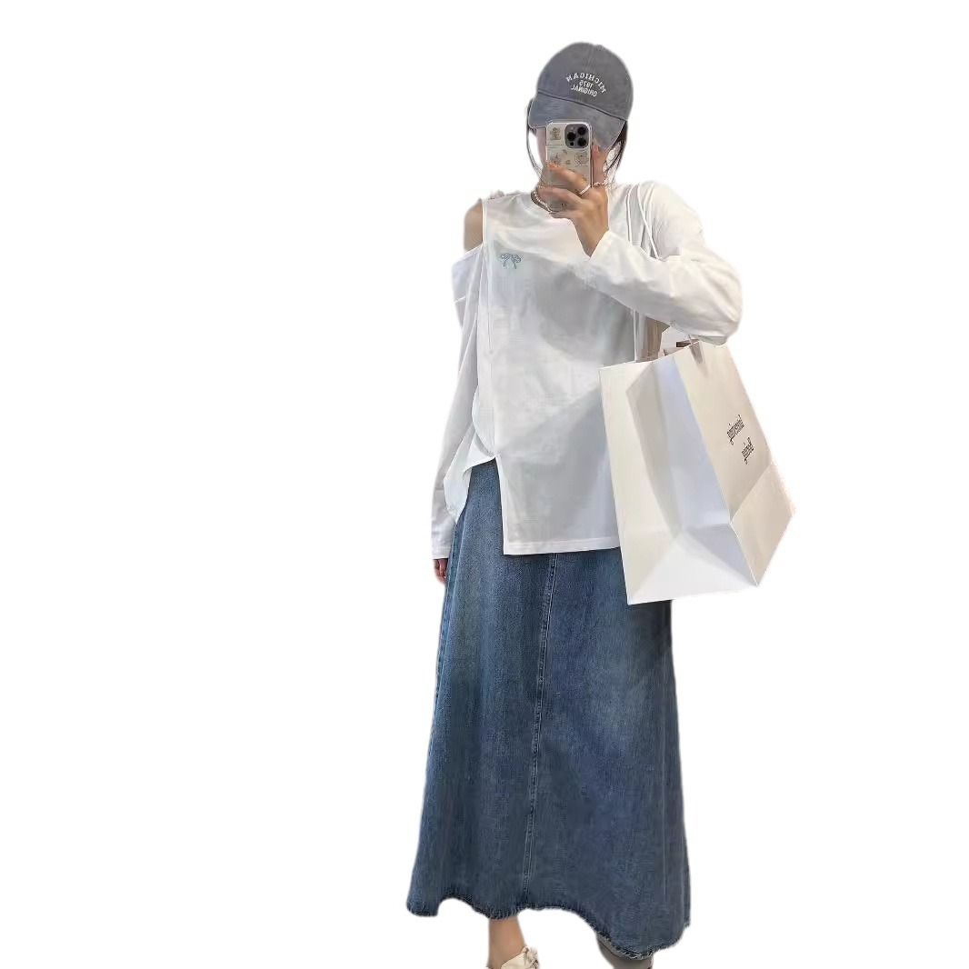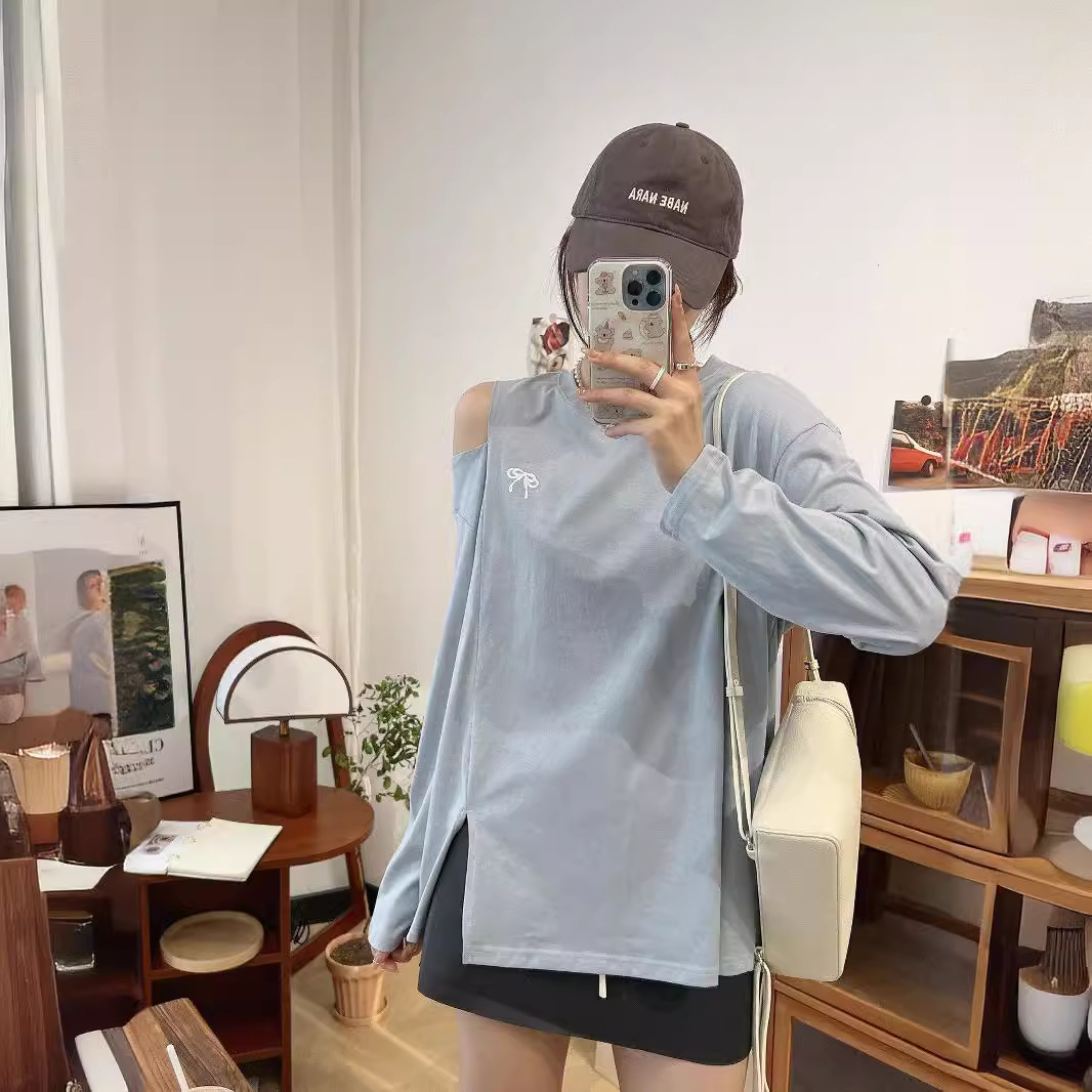 | nameOriginal | 24 New Women's Bow Bottoming Shirt Cary Machine Solid Color Shoulder Split Loose Sexy Cotton Long Sleeve T-Shirt |