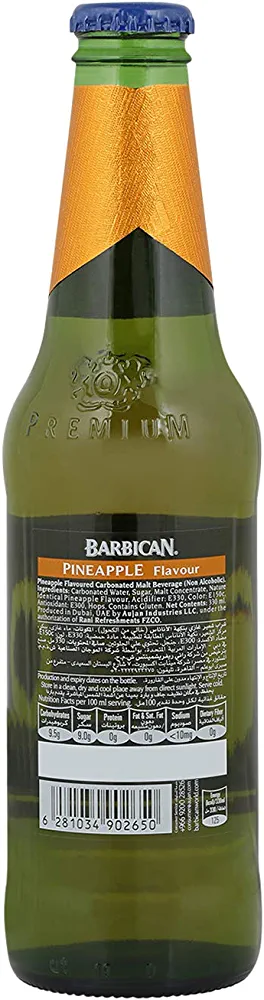 Introducing the refreshing and delicious Barbican Pineapple Malt Beverage, now available in a convenient pack of 24×330 ml. Made with the finest quality ingredients, this non-alcoholic beverage is perfect for those who want to enjoy a refreshing drink without the buzz. The sweet and tangy flavor of pineapple combined with the rich malt taste creates a unique and satisfying taste that will leave you wanting more. Whether you’re looking for a refreshing drink to quench your thirst or a tasty beverage to enjoy with friends and family, Barbican Pineapple Malt Beverage is the perfect choice. So why wait? Order your pack today and experience the delicious taste of Barbican Pineapple Malt Beverage!