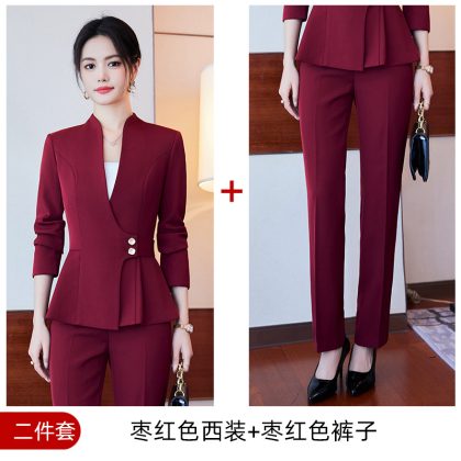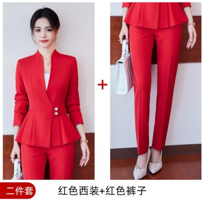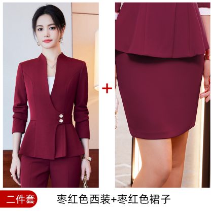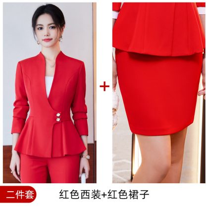 | nameOriginal | 24 Spring and Autumn new red long sleeve V-neck professional casual small suit collar jacket women's pants skirt suit |