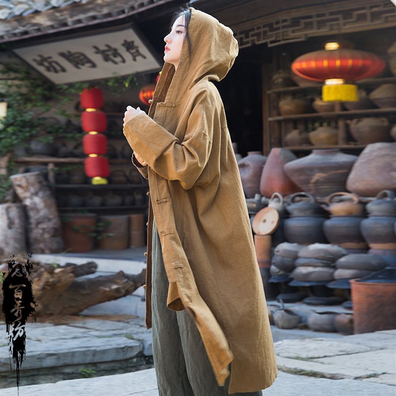 | nameOriginal | 24 Spring and Summer Cotton and Linen Women's Clothing New Ramie Cotton Sand Wash Disc Buckle Hooded Zen Style Women's Cloak Gown Outerwear Coat |
