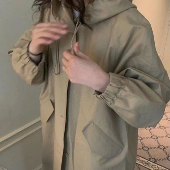 | nameOriginal | 24 spring and summer mid-length hooded windbreaker niche design cotton drawstring women's casual jacket loose Korean style lazy style |