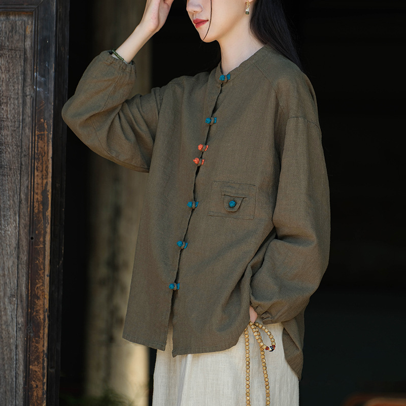 | nameOriginal | 24 spring and summer new cotton and linen women's clothing artistic retro Ramie top shirt Women's color matching buckle cardigan coat |