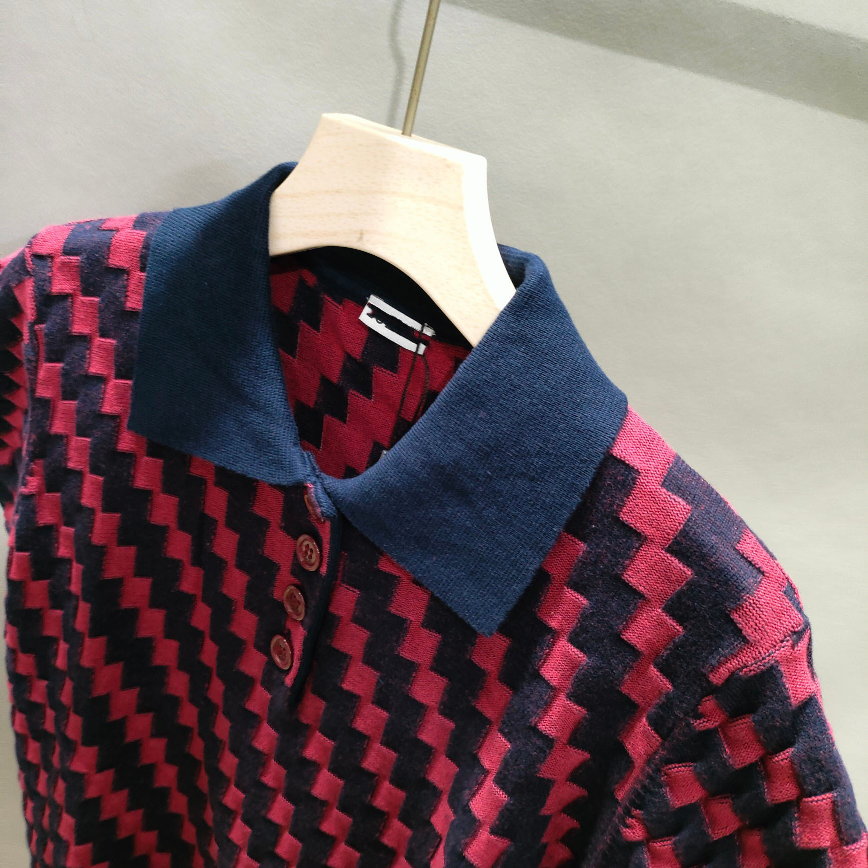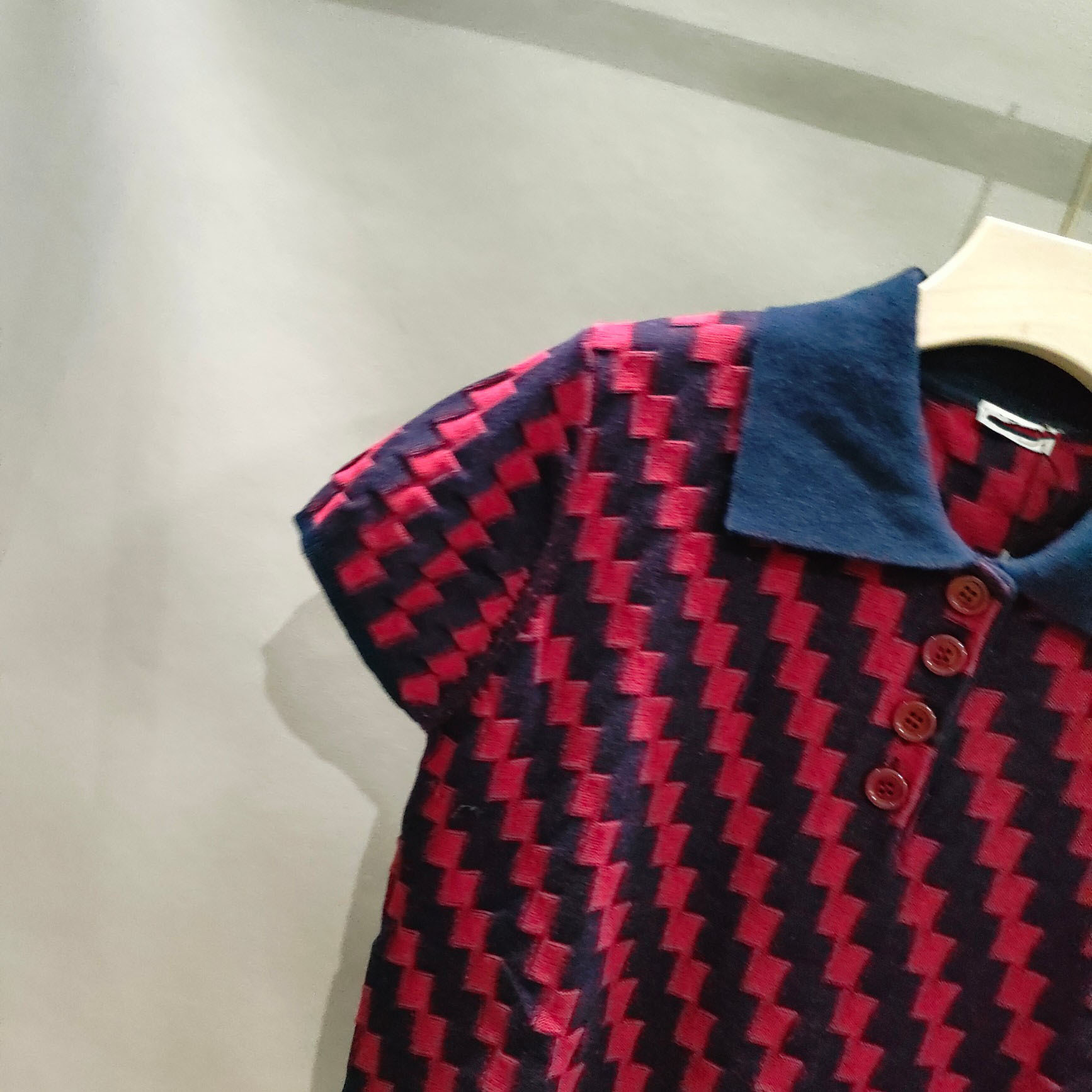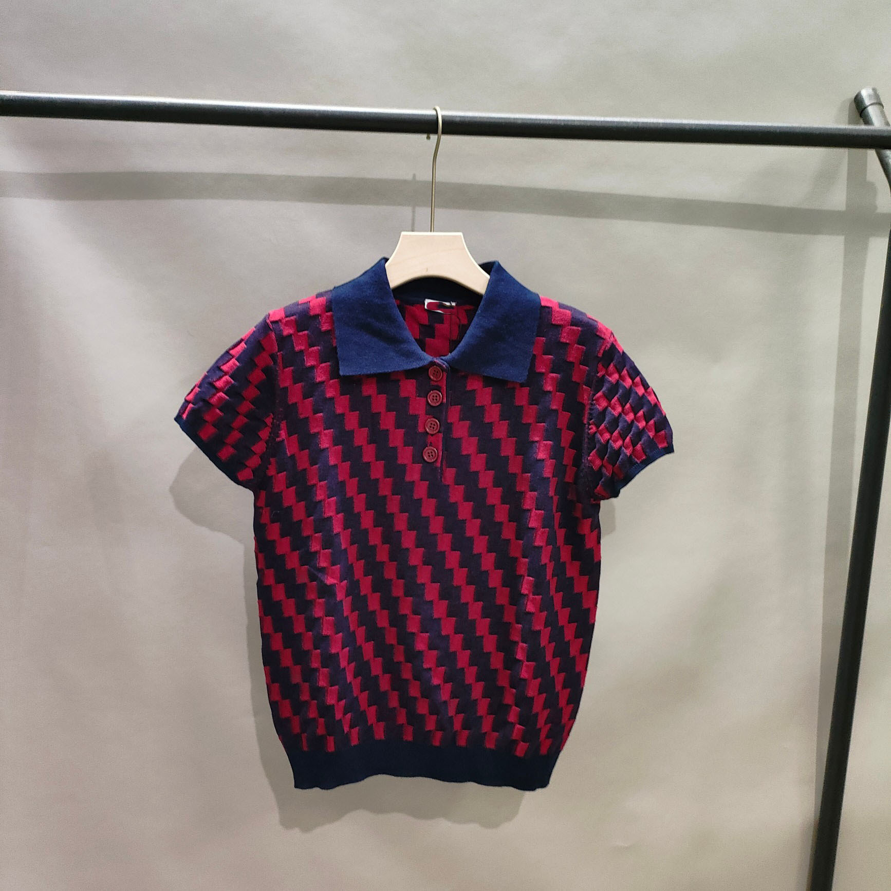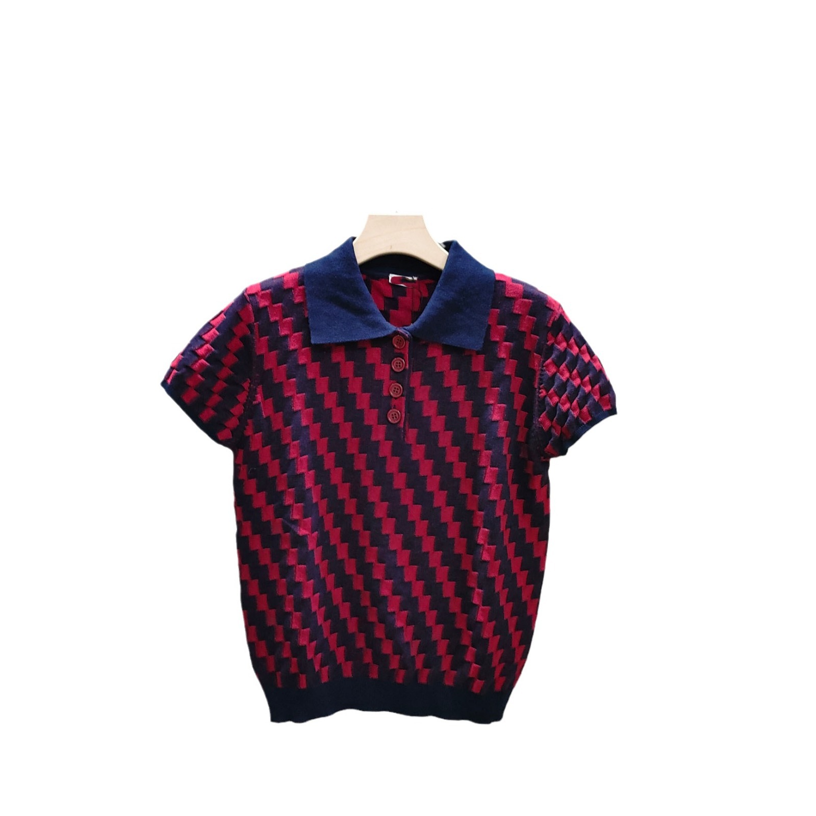 | nameOriginal | 24 Spring and Summer New L Home Artistic Retro Plaid Jacquard Polo Shirt Blue Raglan Sleeve Short Sleeve Top T-shirt |