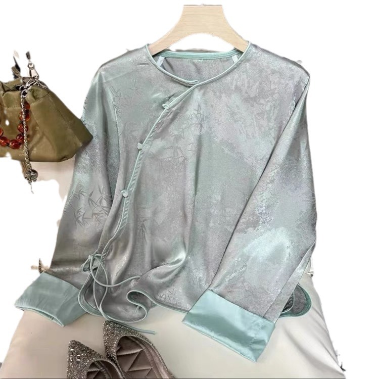 24 Spring and Summer New New Chinese Style National Style Temperament Old Money Style Pink Jacquard Shirt Inner Jacket Outer Wear Matching