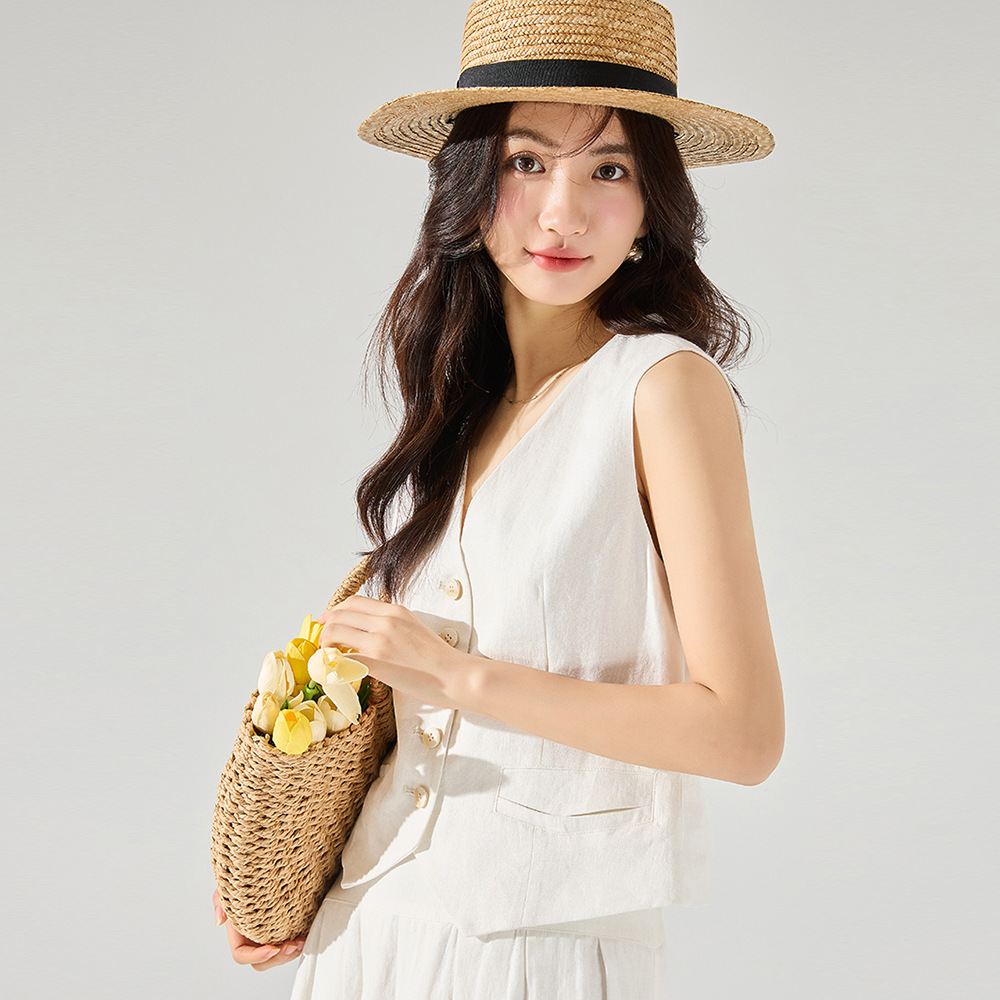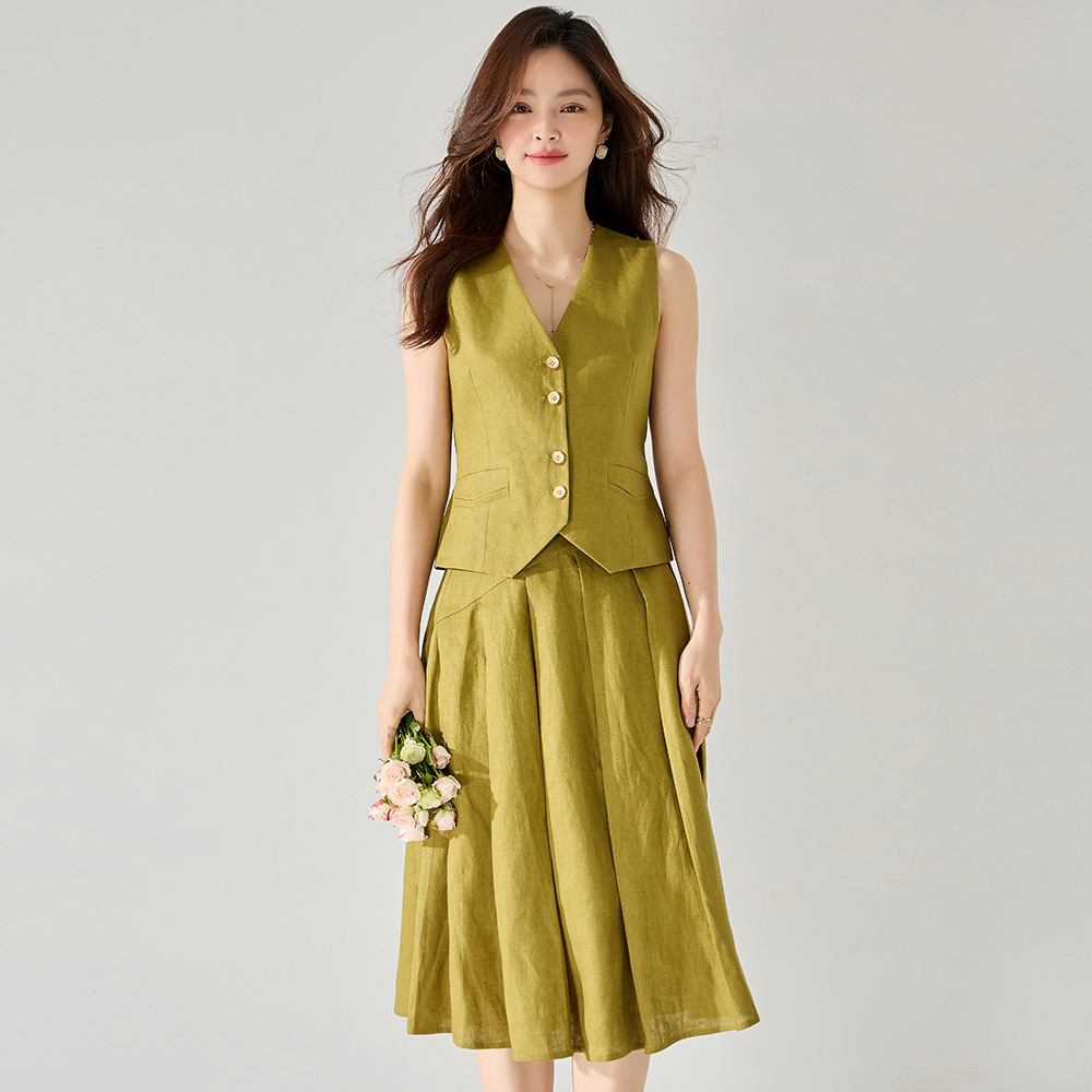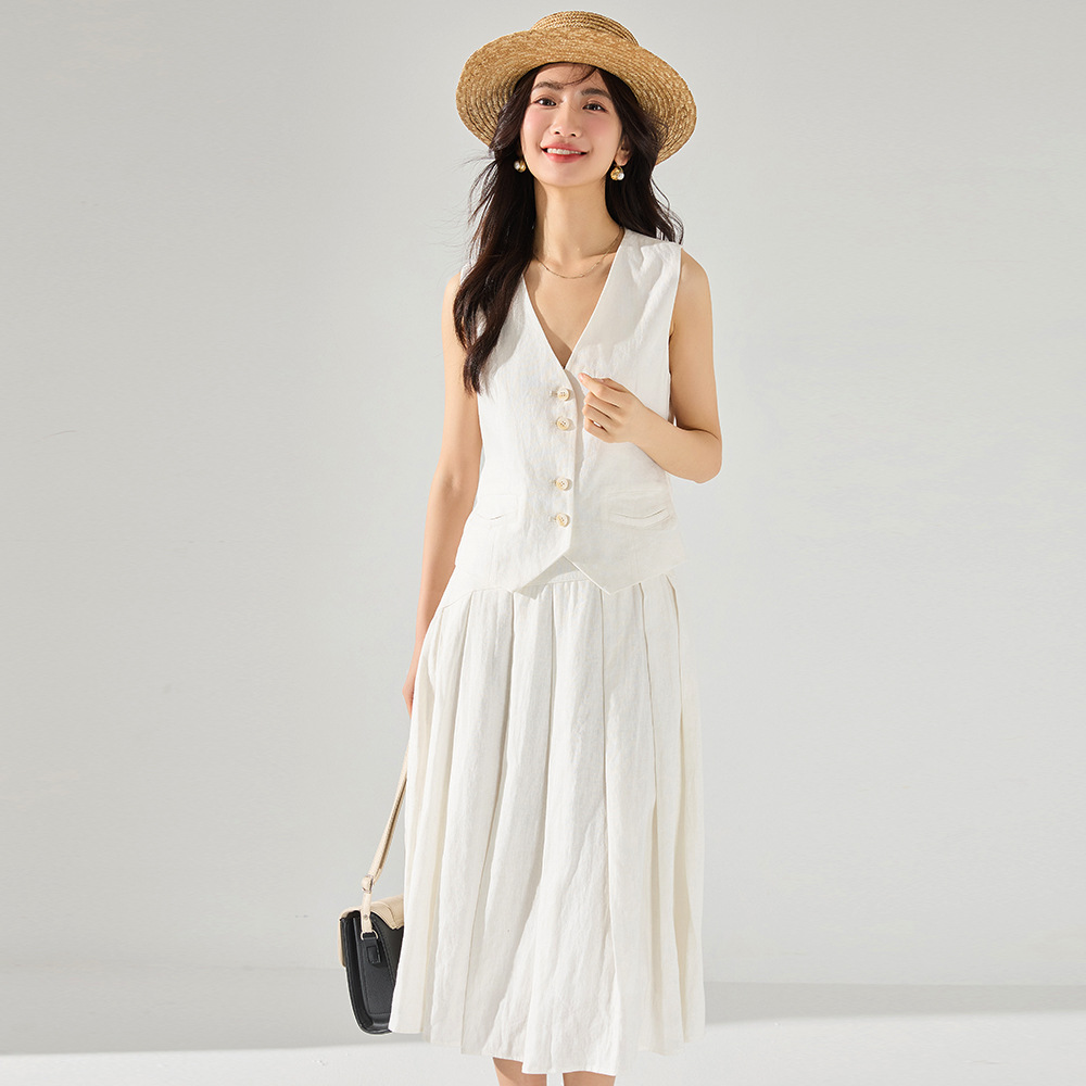 | nameOriginal | 24 spring new simple old money style French retro linen vest pleated skirt suit 22235 skirt 22236 |