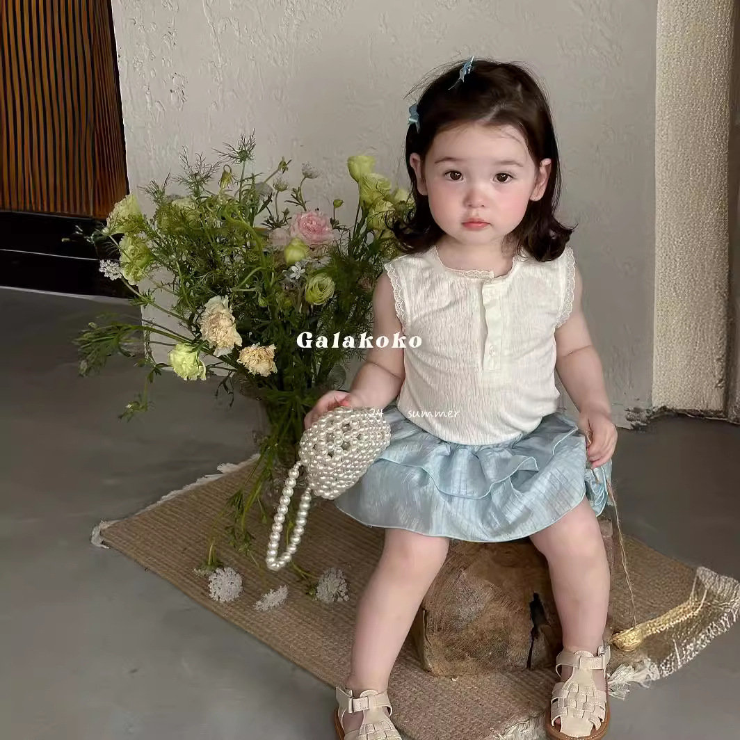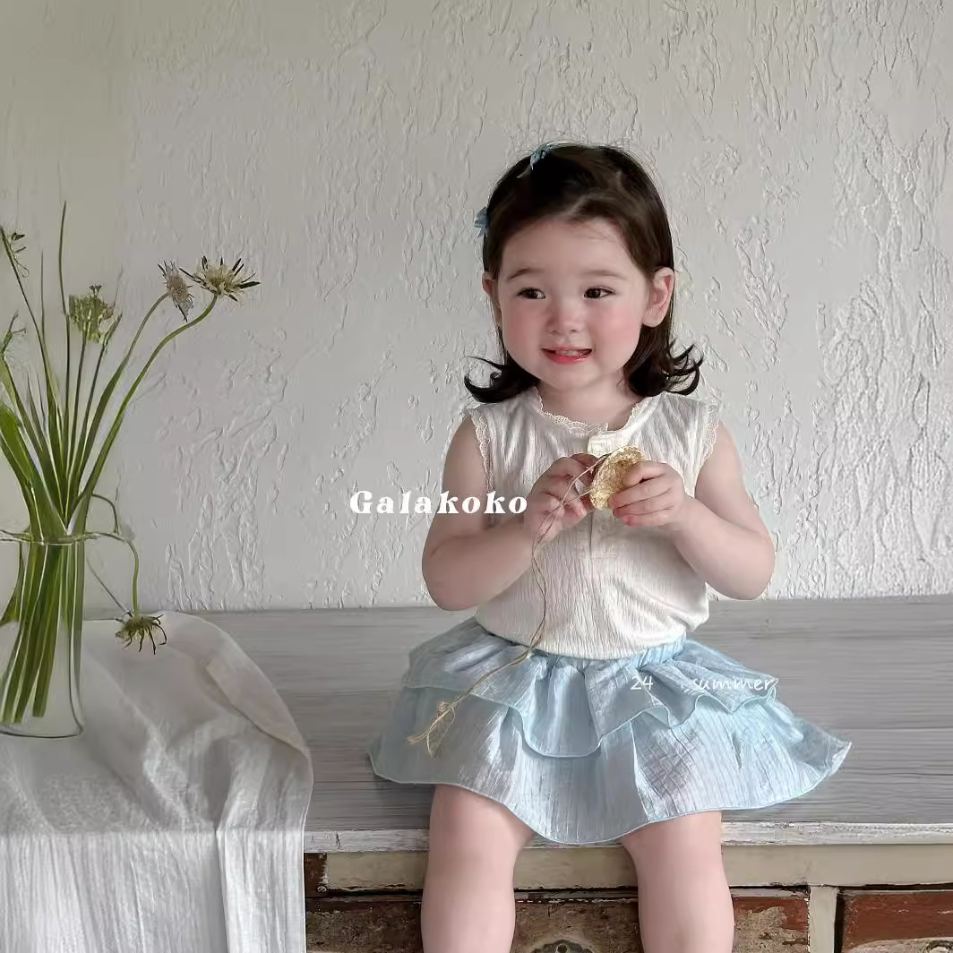 24 Summer Baby Knitted Vest Skirt Casual Baby May Day Travel Wear Class A Outfit