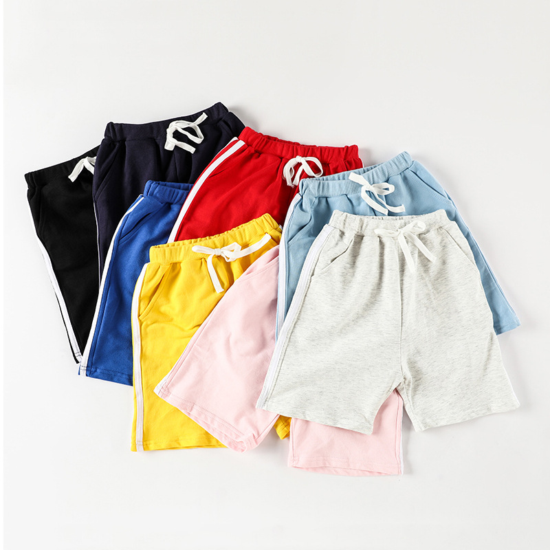 | nameOriginal | 24 summer children's candy color simple stripe pocket shorts boys and girls loose casual three-point sports home pants |