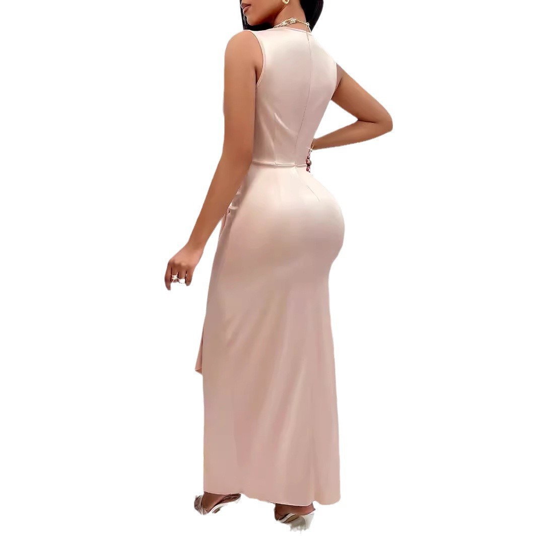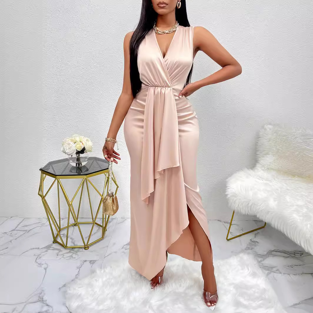 | nameOriginal | 24 summer European and American sexy women's clothing independent station Foreign trade solid color casual V-neck cross sleeveless sheath dress |