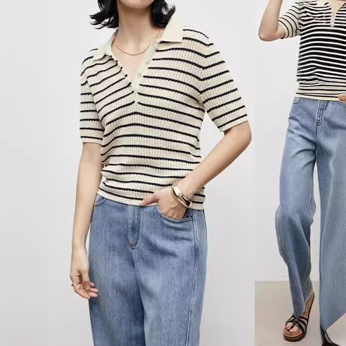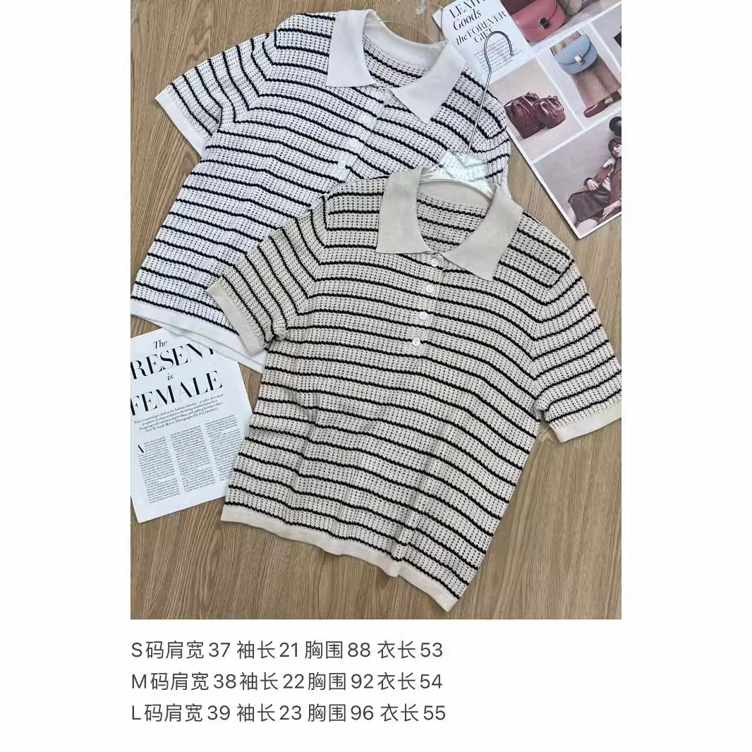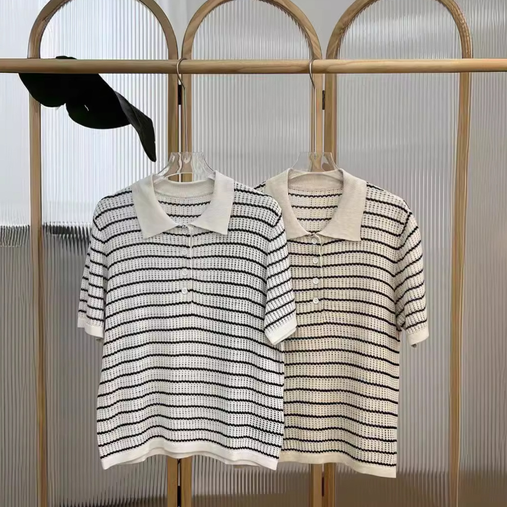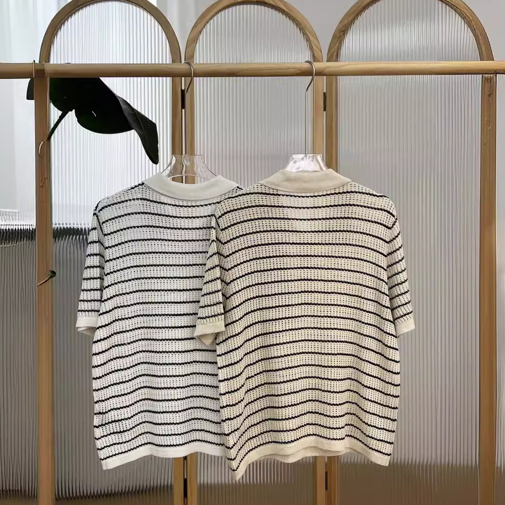 | nameOriginal | 24 Summer Factory Tail American Style Vintage Classic Striped Mesh Breathable Knitted Polo Shirt |