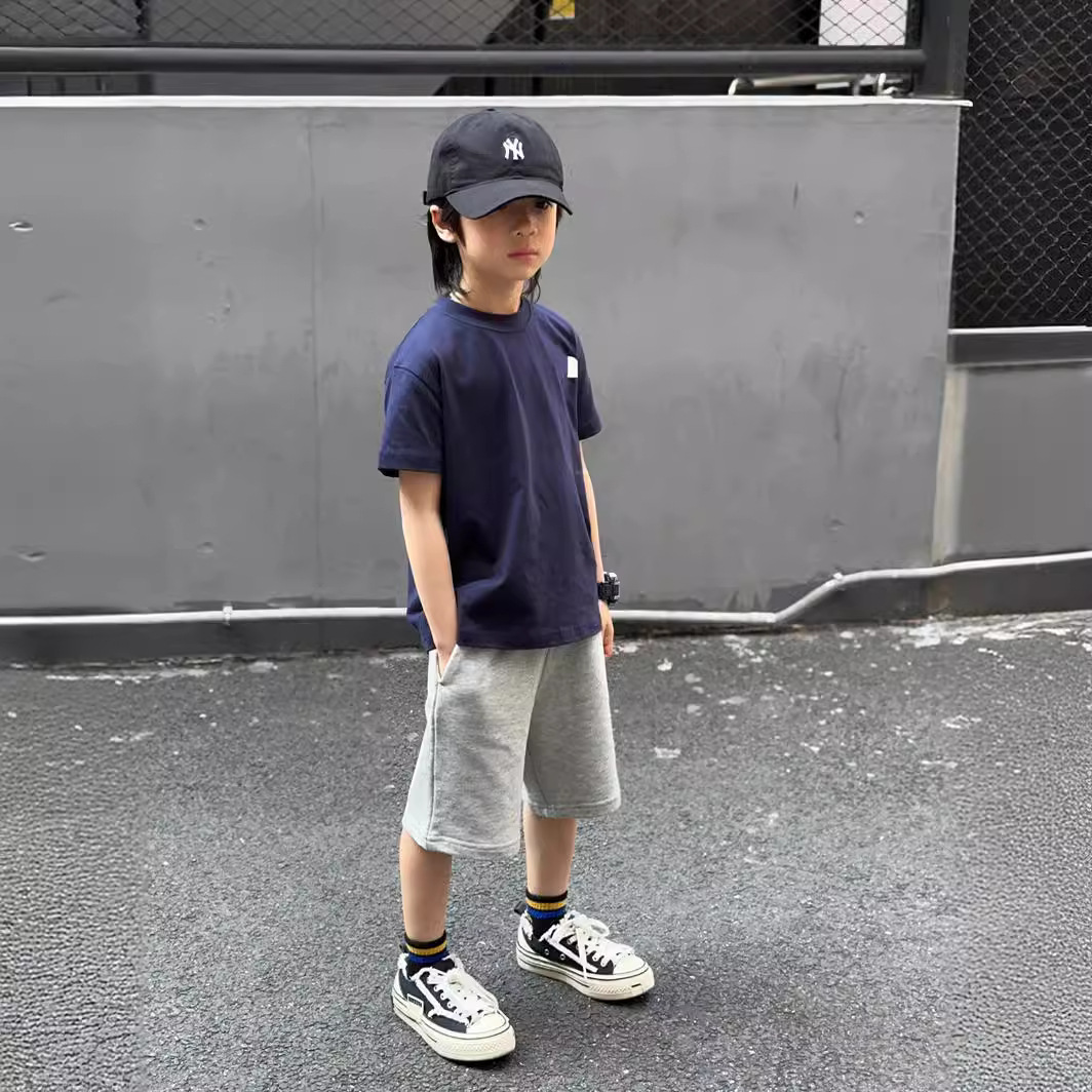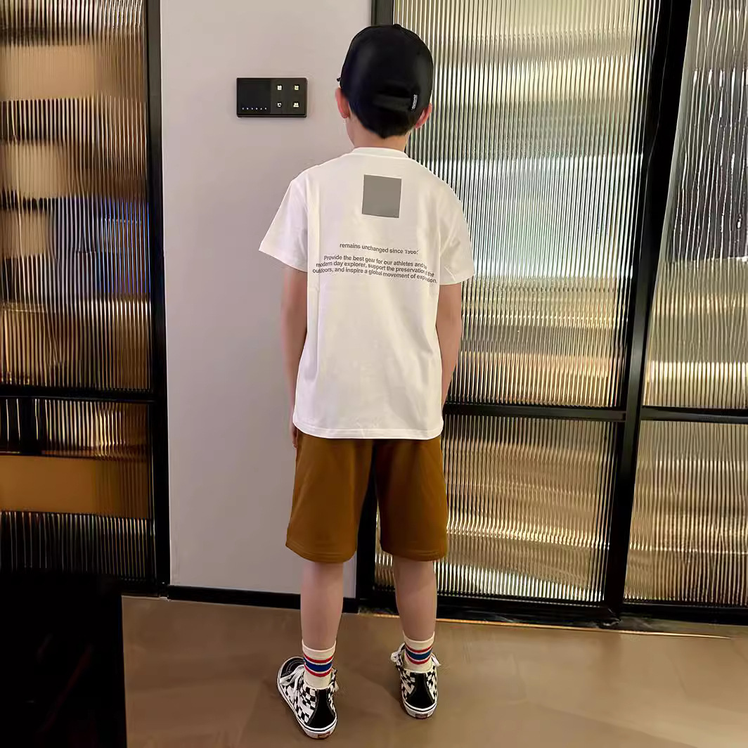 | nameOriginal | 24 summer fashion brand children's clothing boys medium and large children's short sleeve top back small square printed children's T-shirt S592 |