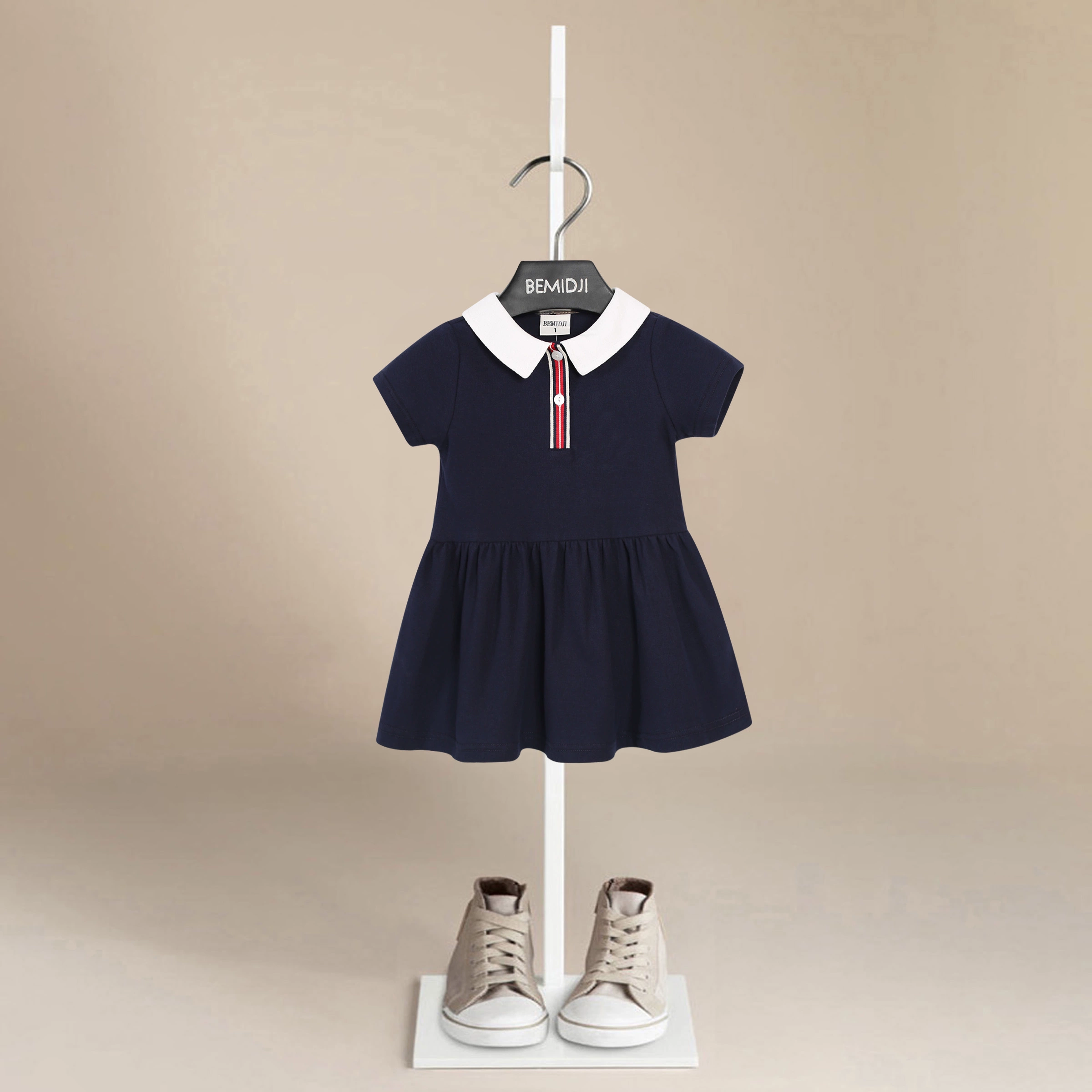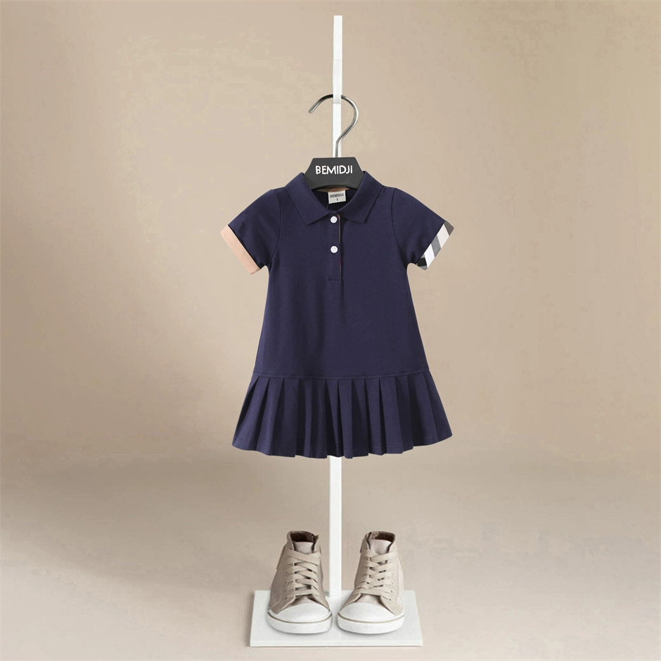 | nameOriginal | 24 Summer girls short-sleeved preppy dress for children and middle-aged children polo collar casual simple pleated British style skirt |