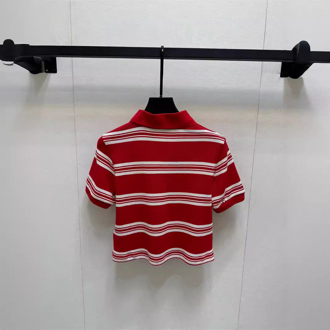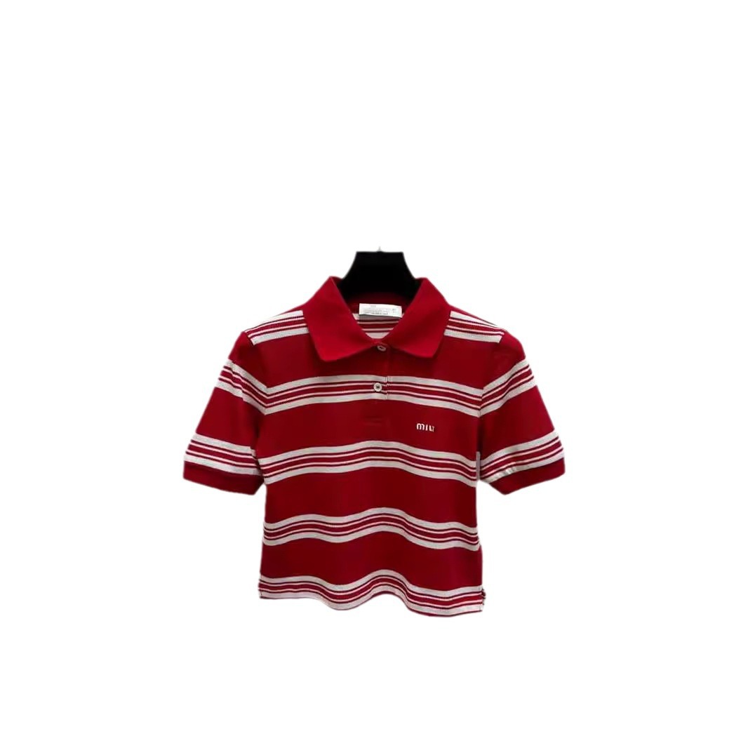 | nameOriginal | 24 summer new south oil miu fashion casual letter jacquard contrast striped short polo collar short sleeve top |