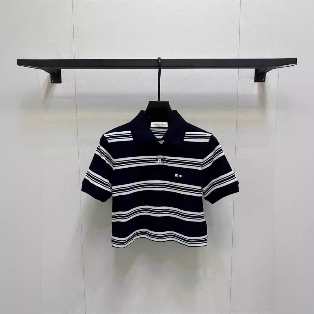| nameOriginal | 24 summer new south oil miu fashion casual letter jacquard contrast striped short polo collar short sleeve top |