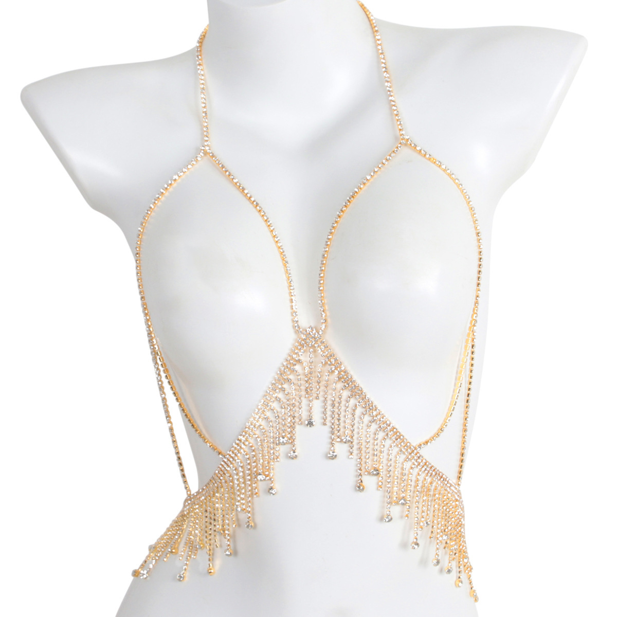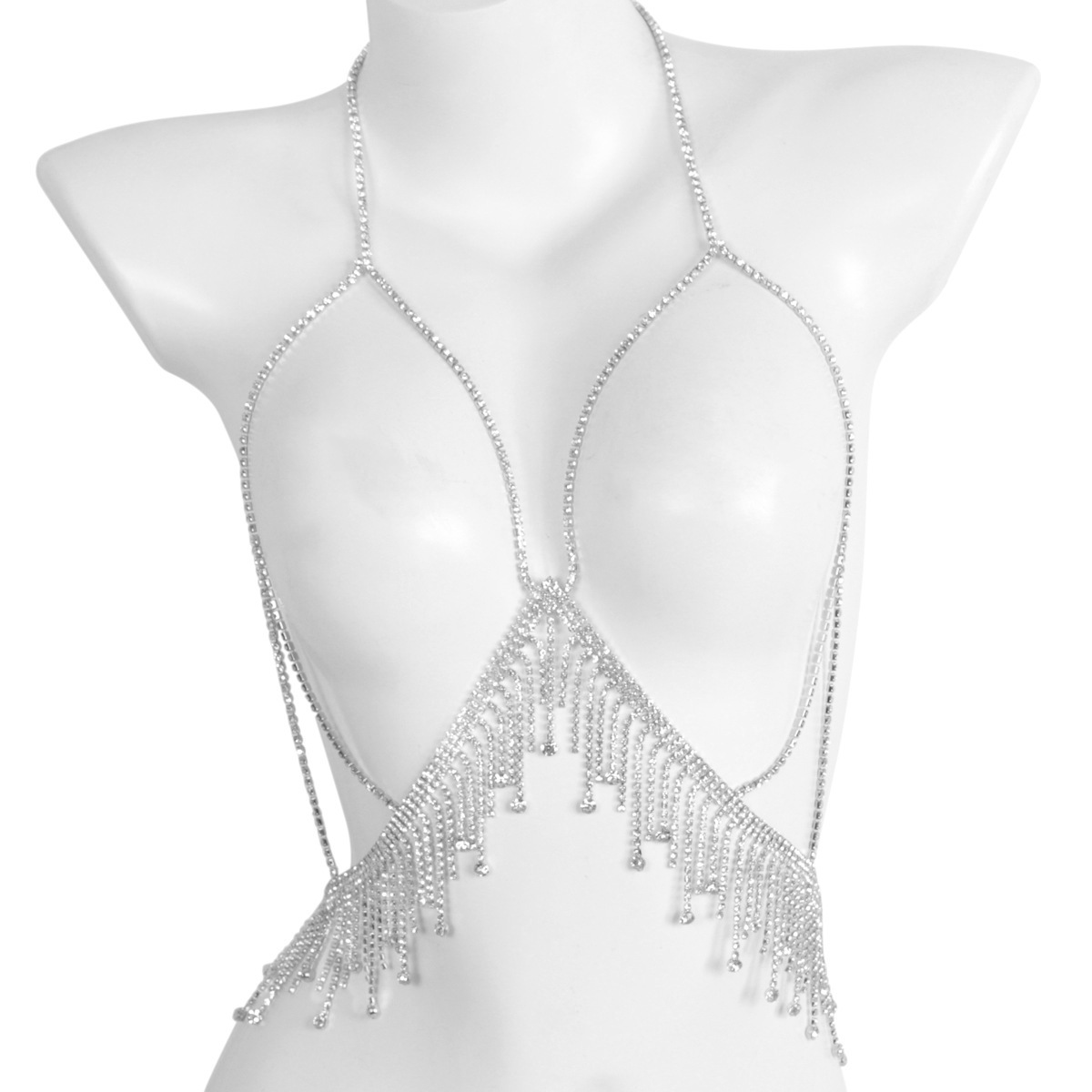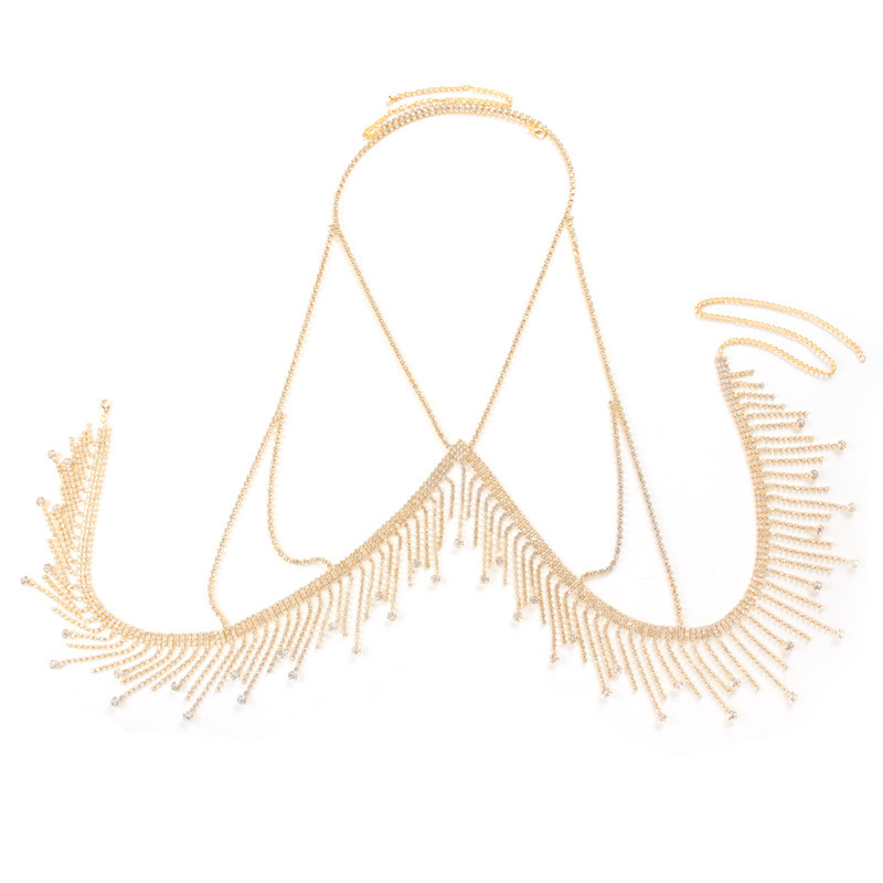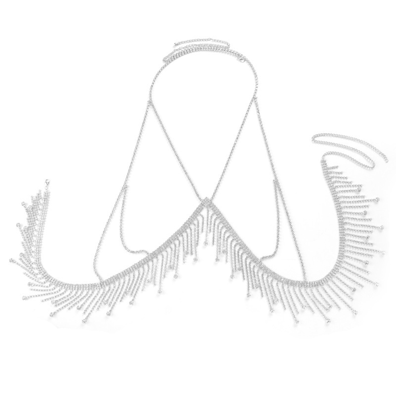 24 years of cross-border new chest chain dress accessories European and American nightclub party sexy rhinestone tassel body chain jewelry