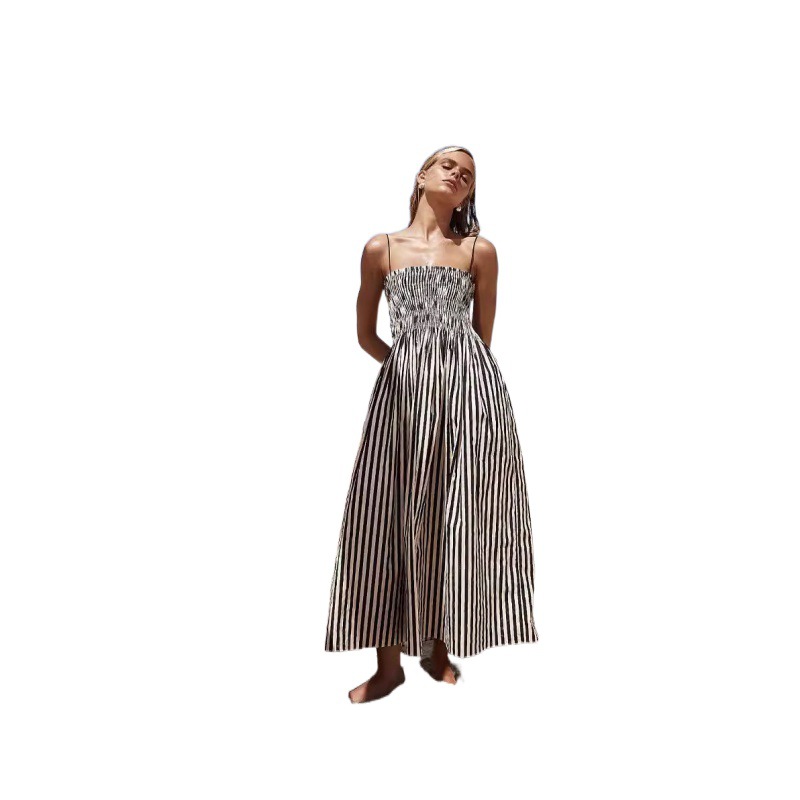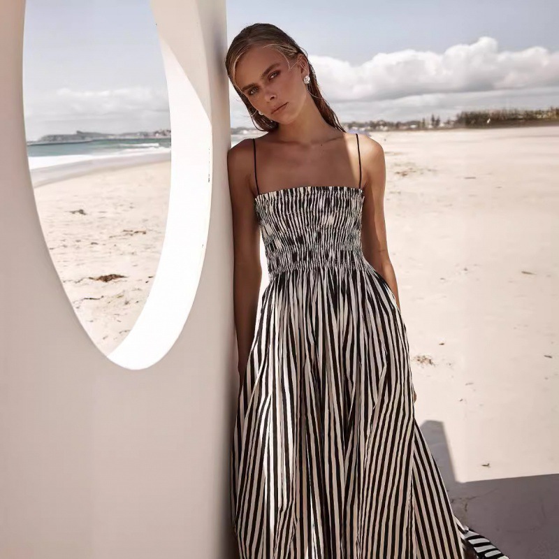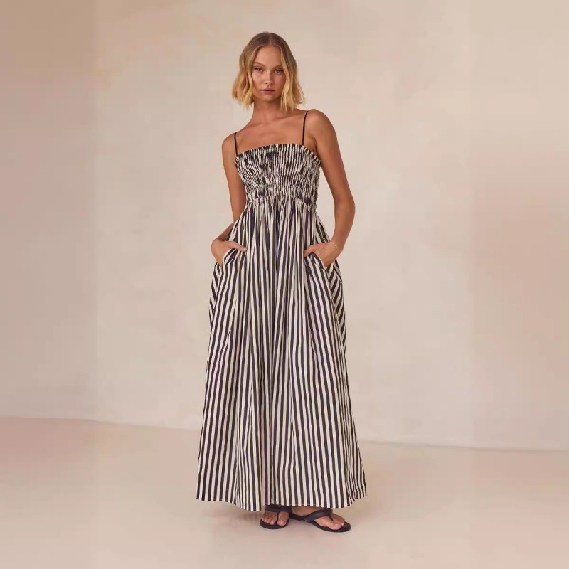 | nameOriginal | 24 years of European and American cross-border spring and summer striped printed rubber sexy large swing pocket sling dress 88010 |