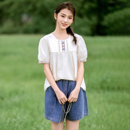 | nameOriginal | 24230 Girl's Short-sleeved T-shirt Summer New Big Boy Ethnic Style Embroidered Top Fashionable All-match High School Junior High School Students |