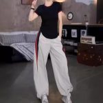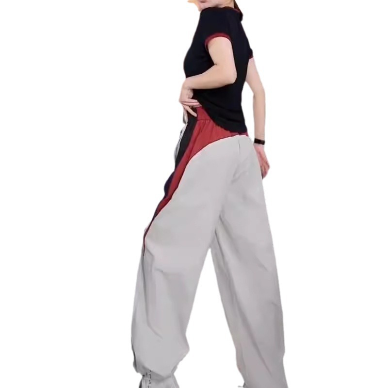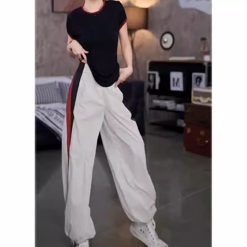 24309 Big Aimei Yiyuan 2024 Summer New Round Neck Color-matching Slim-fit T-shirt Casual Loose Leg Pants Women’s Trendy