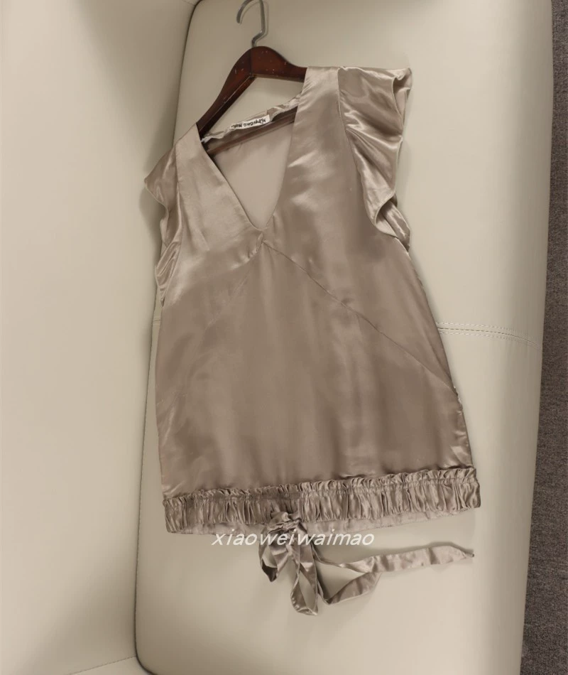 | nameOriginal | 24A381. Foreign trade export order~100% silk plain crepe satin V-neck satin shirt |