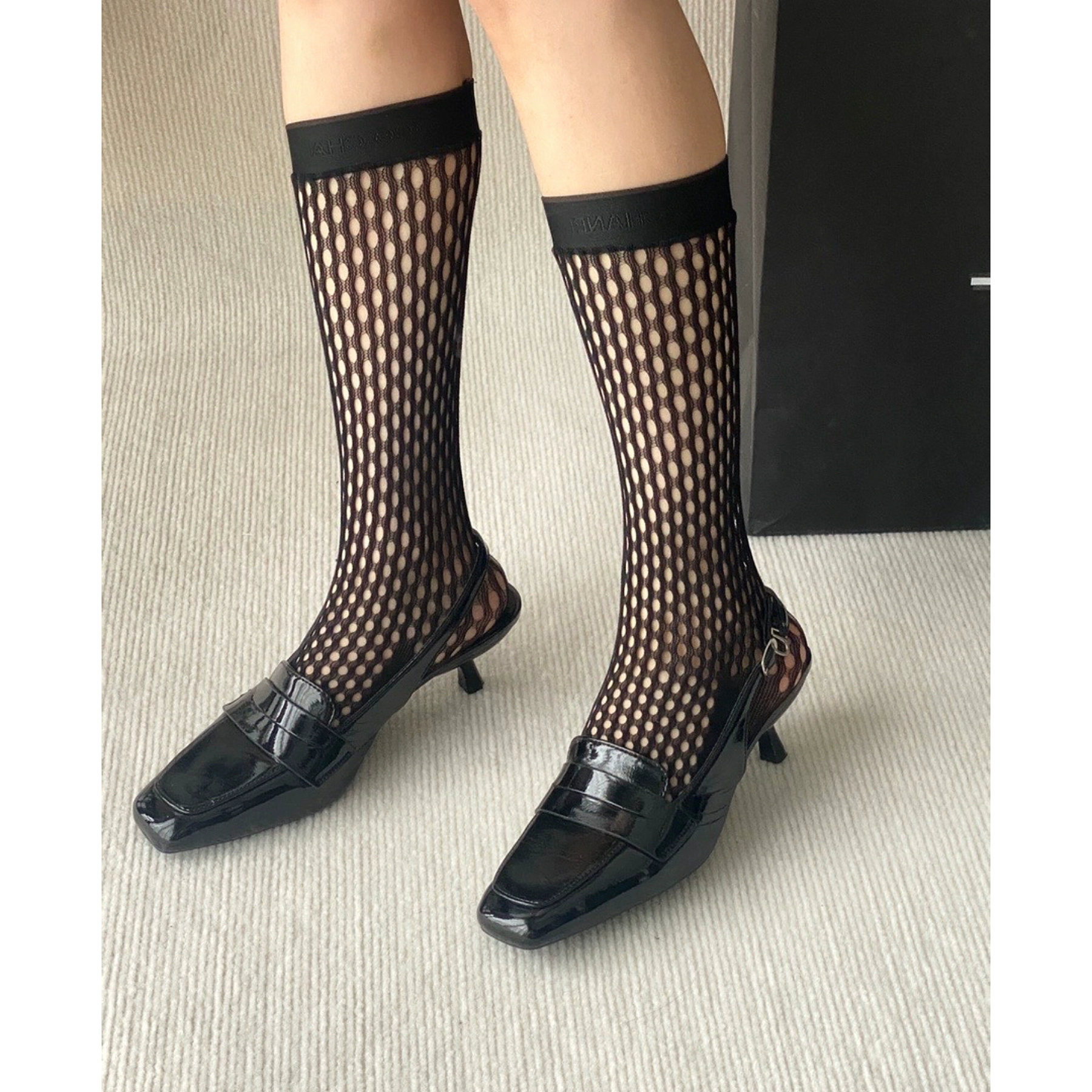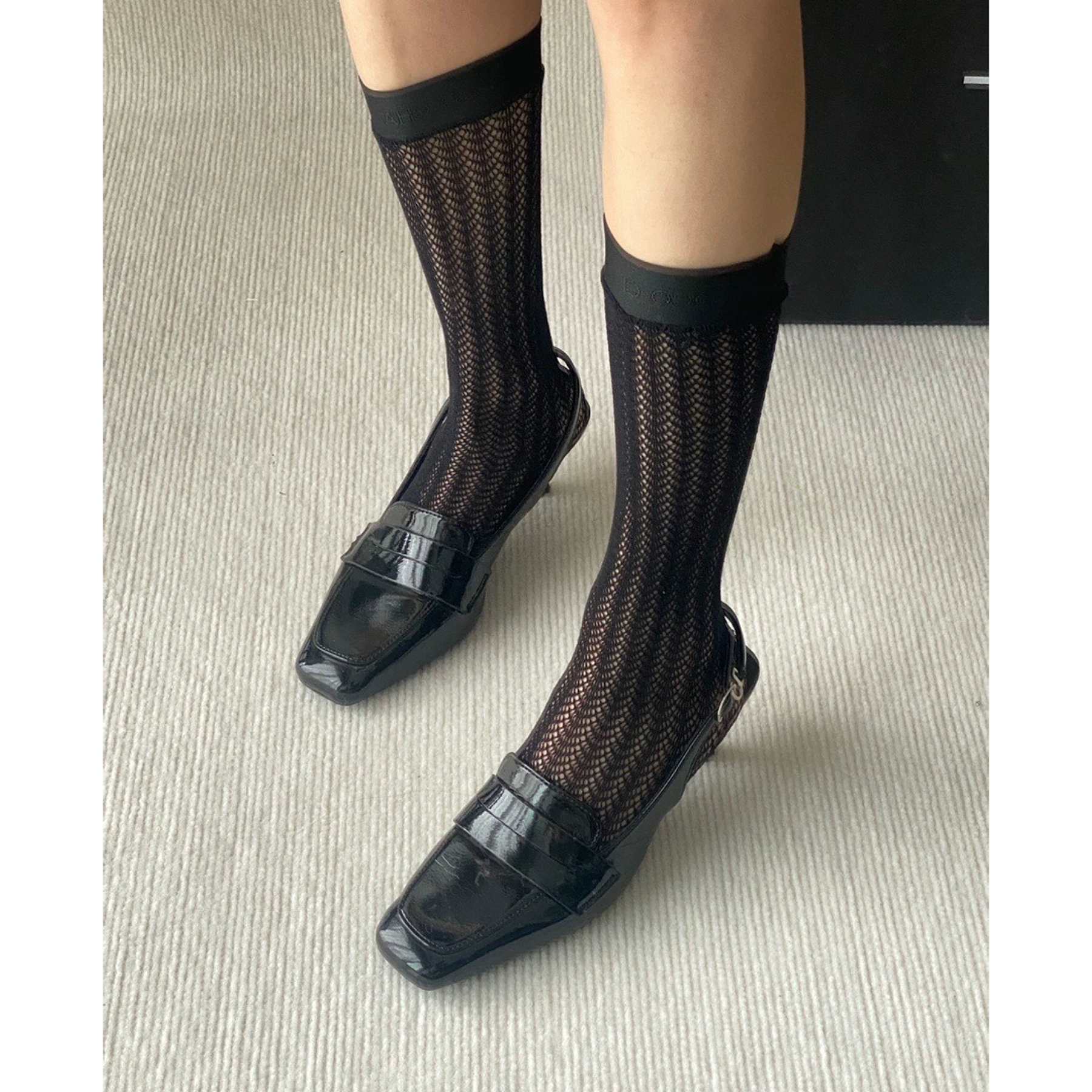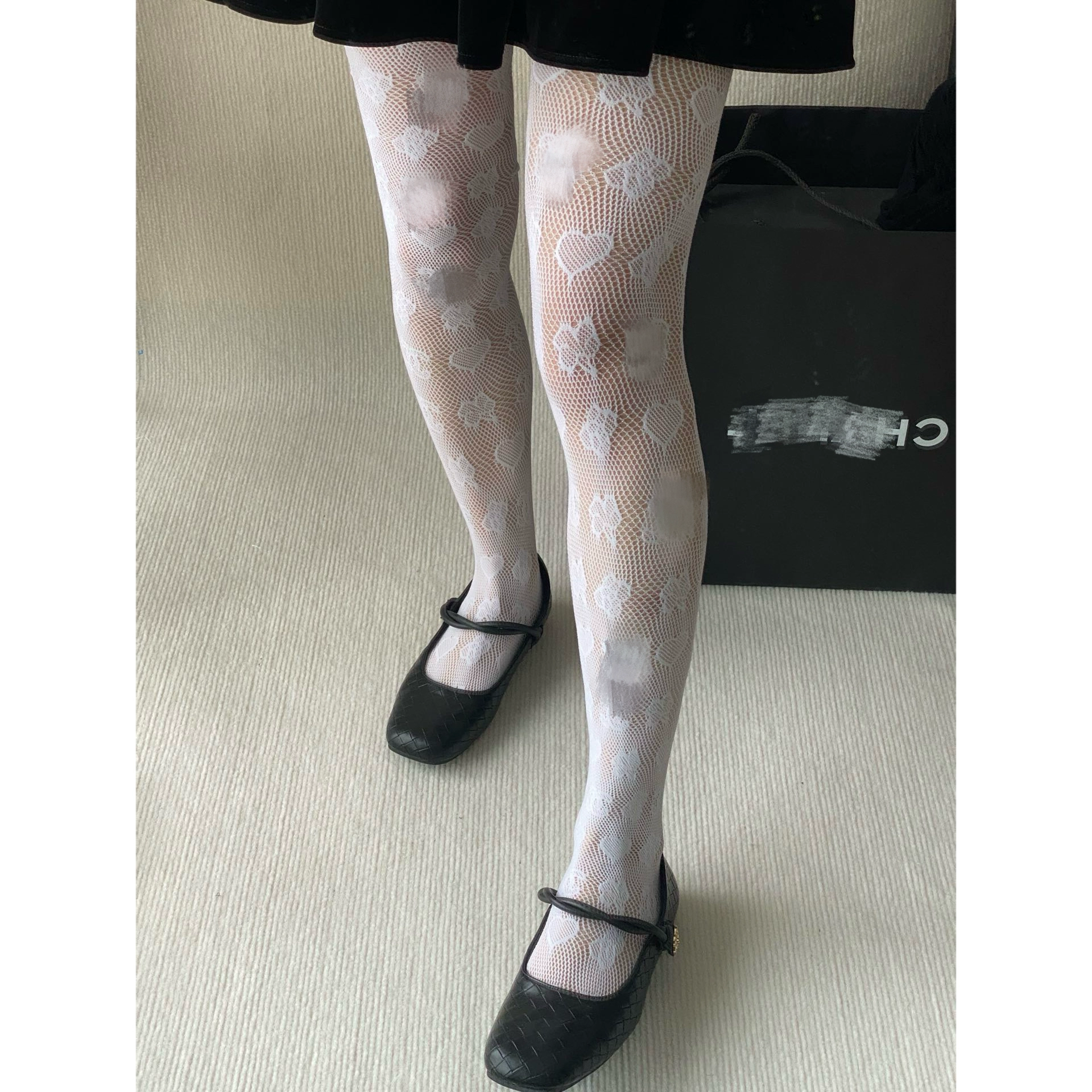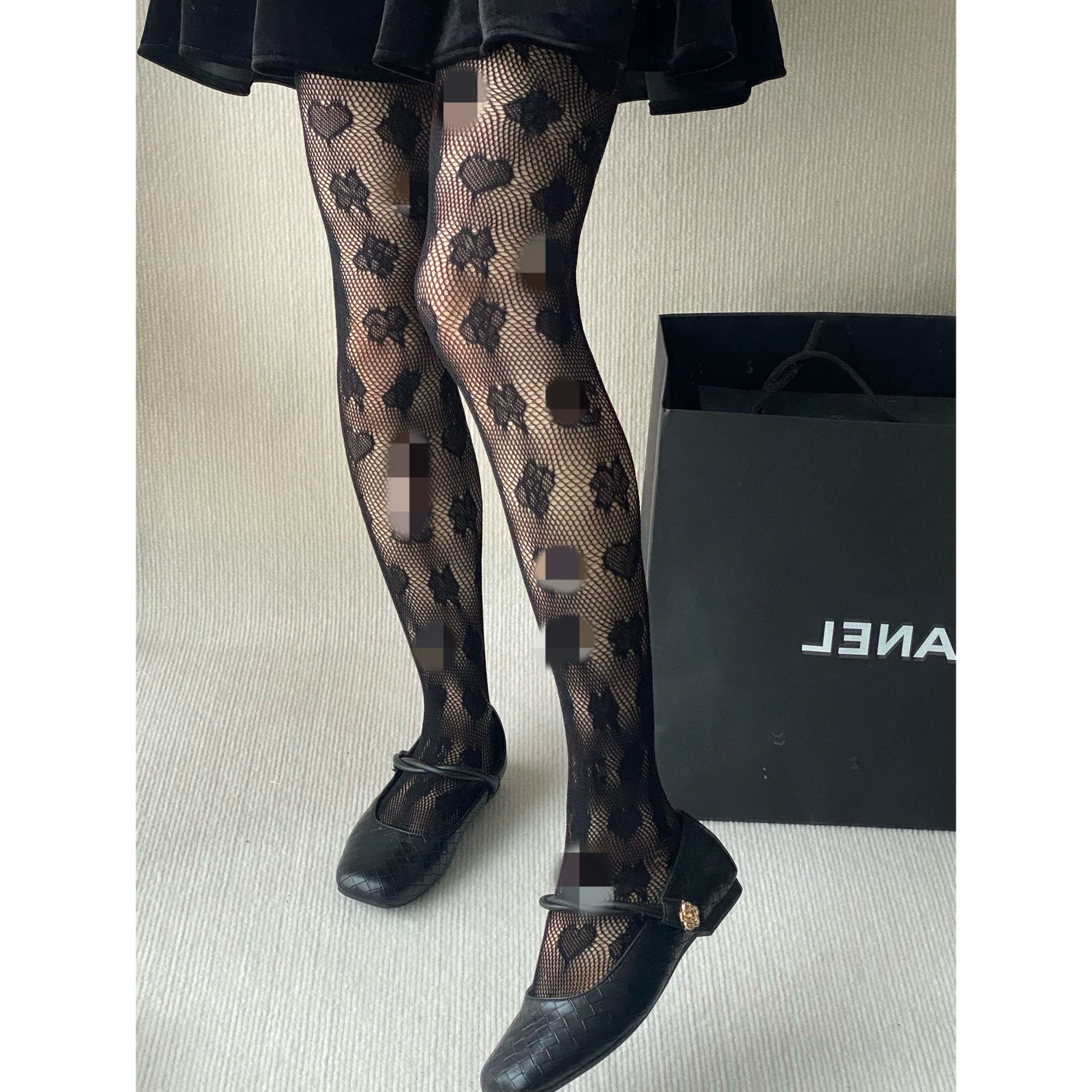 | nameOriginal | 24p new love rose classic small C logo fishnet stockings pantyhose mid-calf socks black and white spring and summer versatile women |