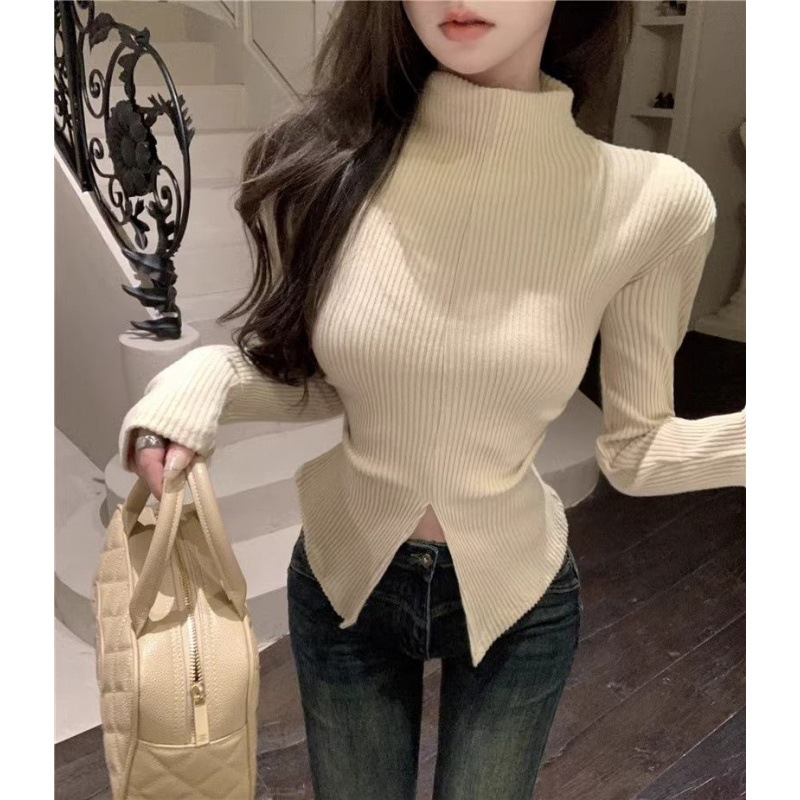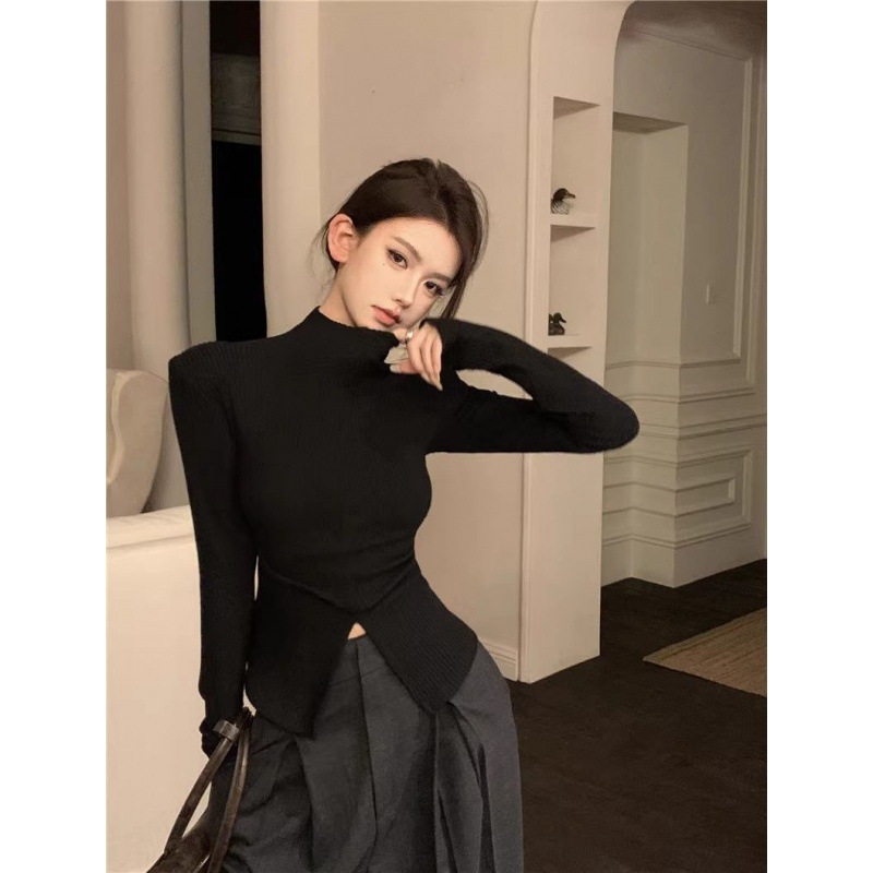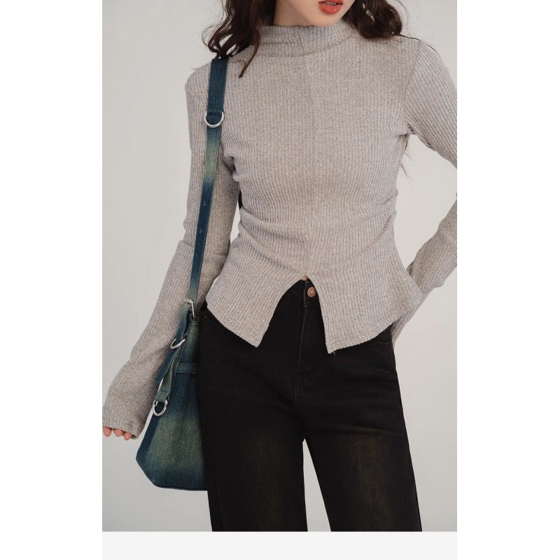 | nameOriginal | [250g 2 × 2 comfortable velvet] semi-high collar long sleeve bottoming shirt women's inner design sense split T-shirt foreign style |