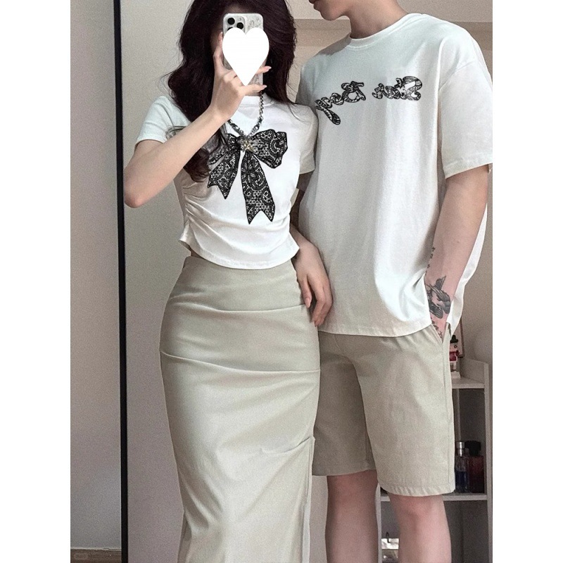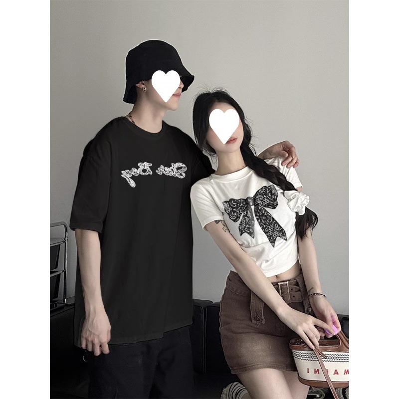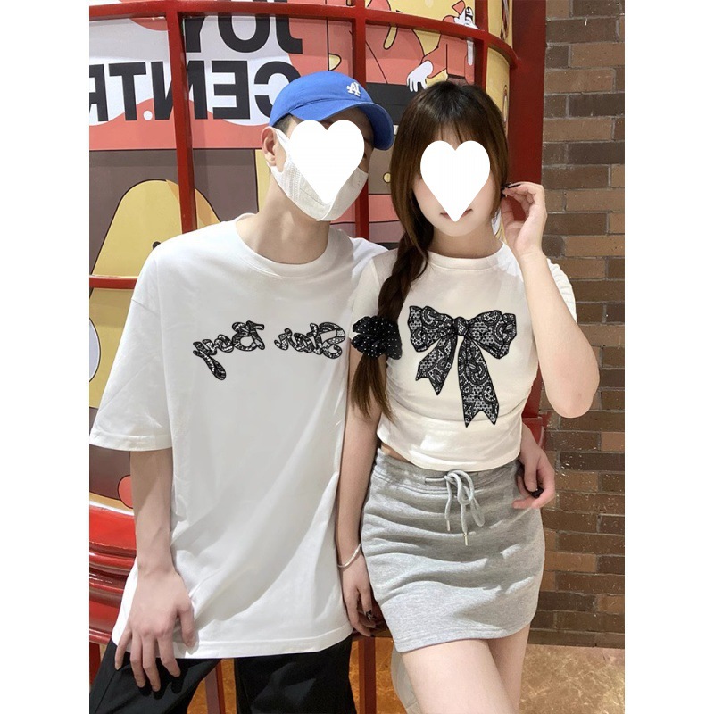 [250g double yarn -220g combed] cotton lace butterfly lovers fashion niche short sleeve T-shirt summer