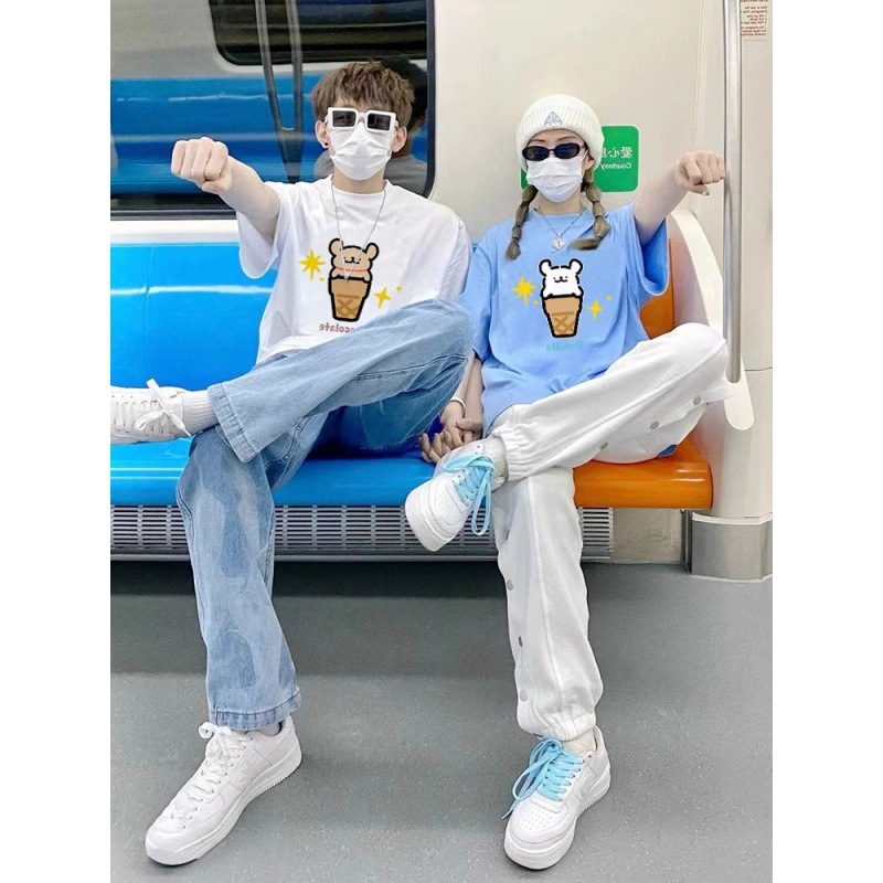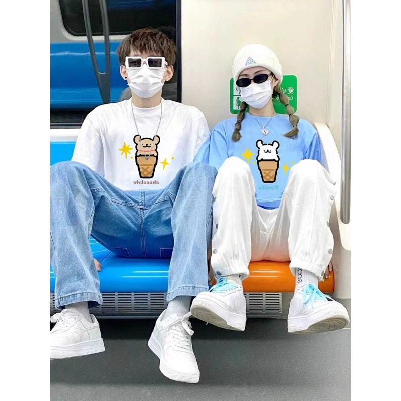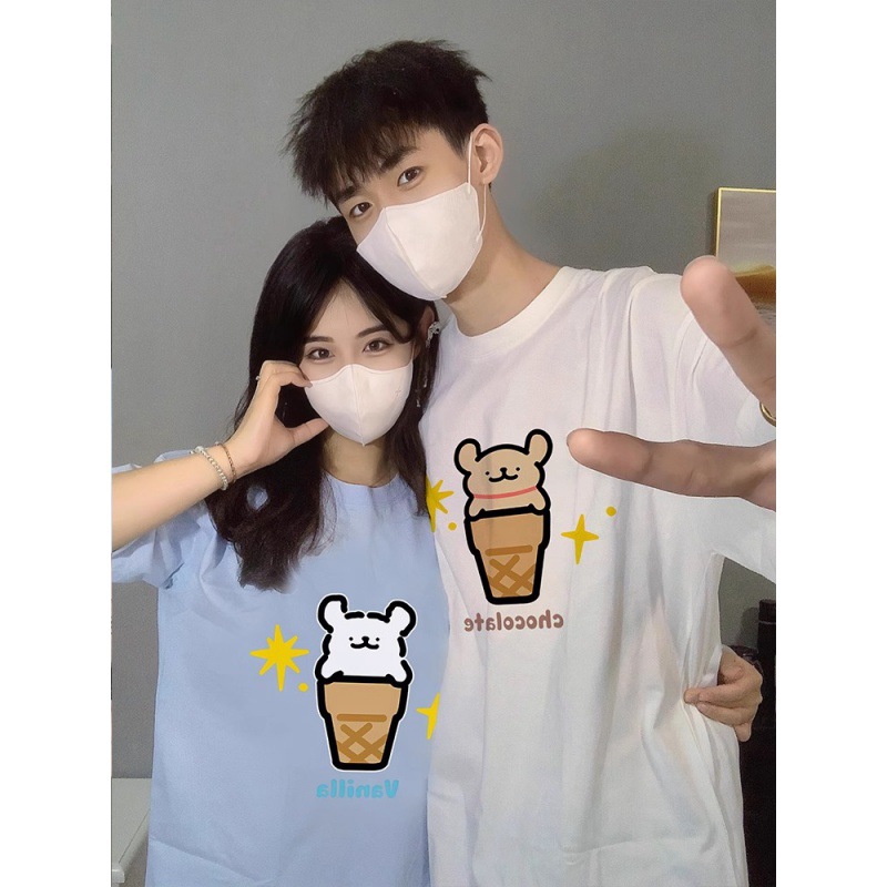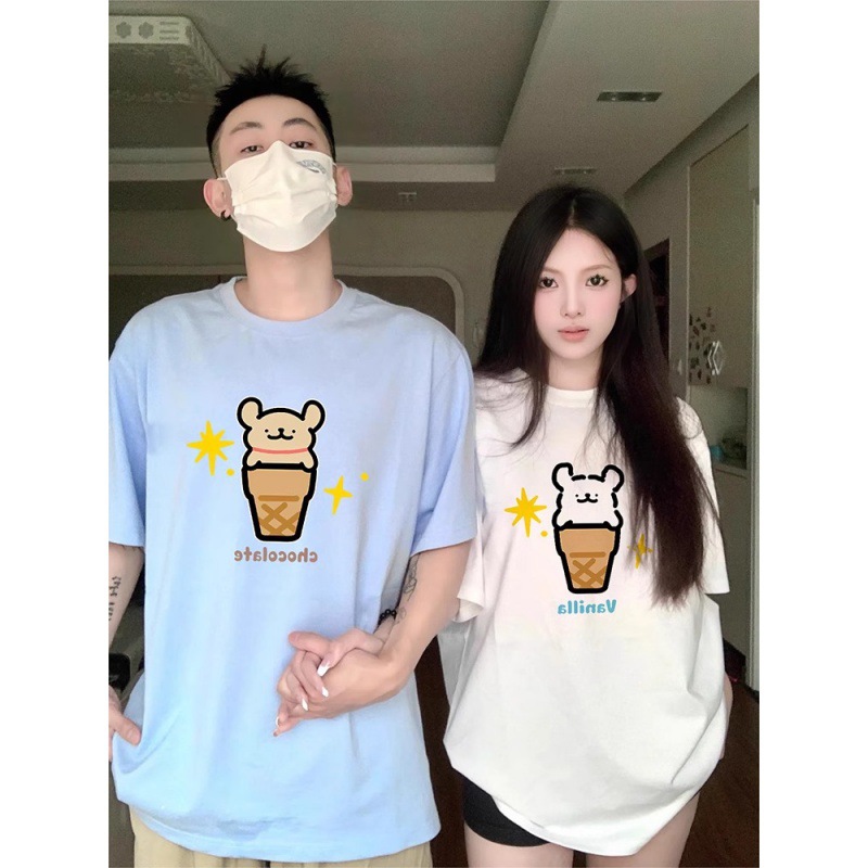 | nameOriginal | [250g Double Yarn -220g Combed] Different Couple Wear Ice Cream Printed Short Sleeve T-shirt from Pure Cotton |