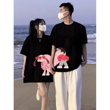 [250g double yarn -220g combed] pure cotton is not the same lovers love net red short sleeve T-shirt summer