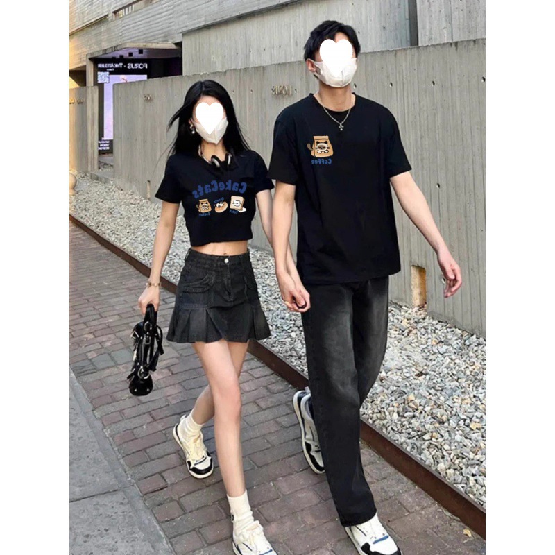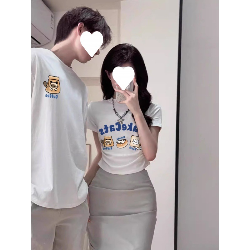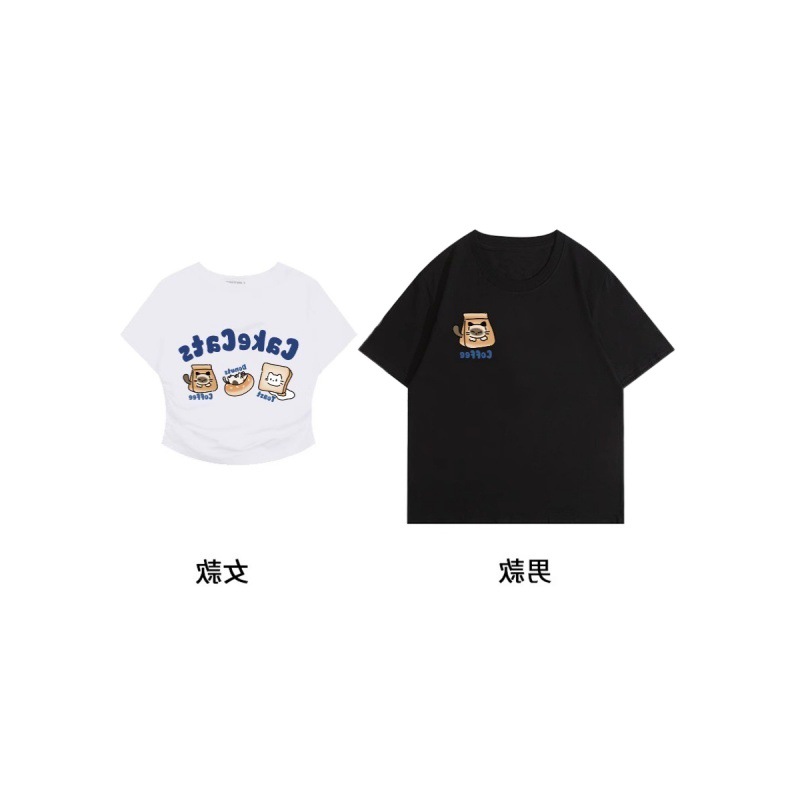 | nameOriginal | [250g Double Yarn -220g Combed] Pure Cotton Special Couple Pack Tea Cat Printed Short Sleeve T-shirt Summer |
