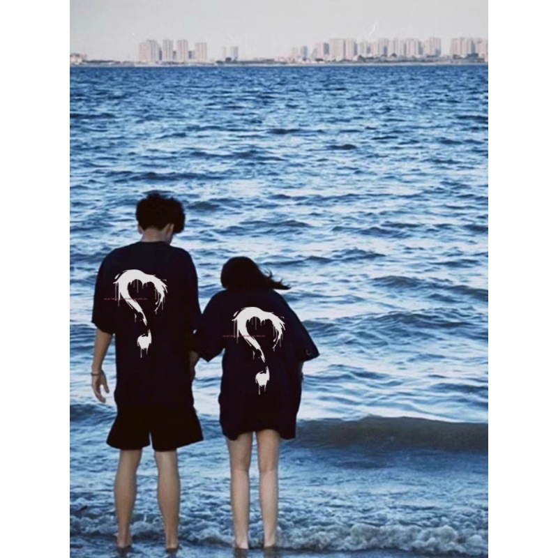 [250g Double Yarn -220g Combed] Pure Cotton Special Net Red Couple Dress Summer Dress Niche Short Sleeve T-shirt