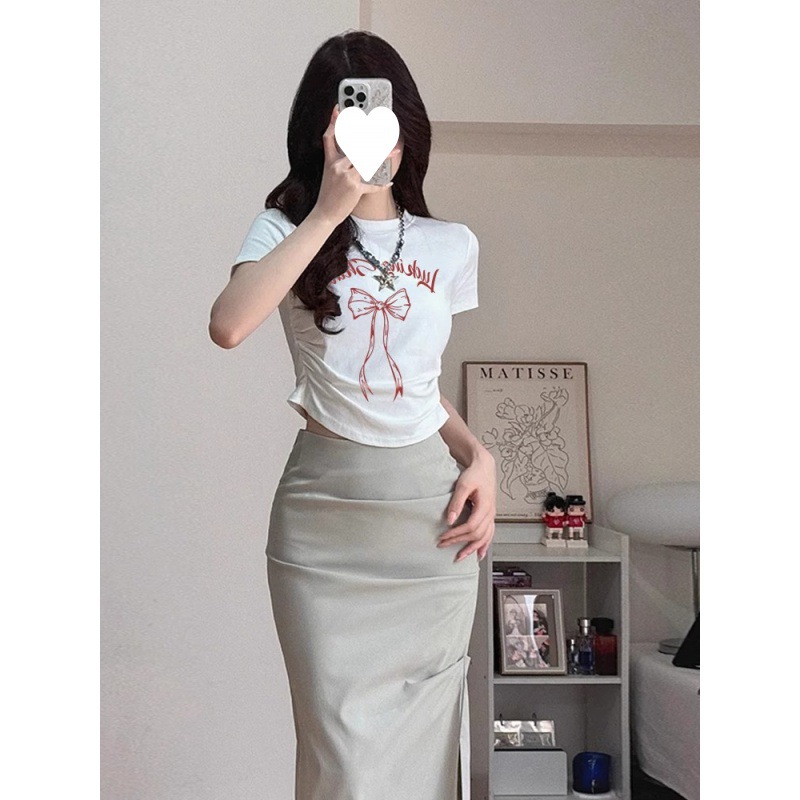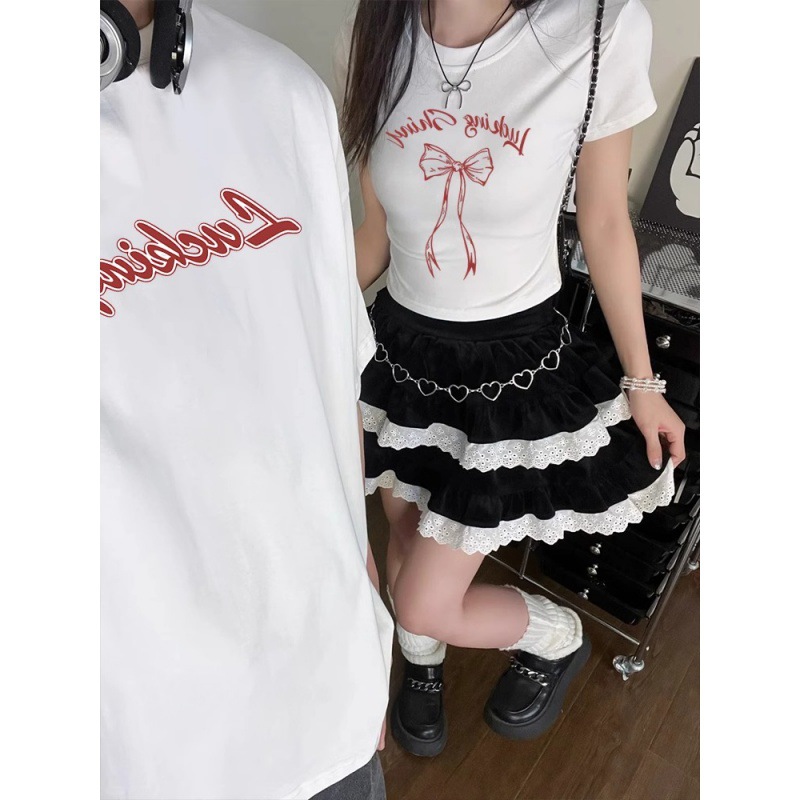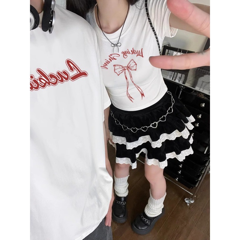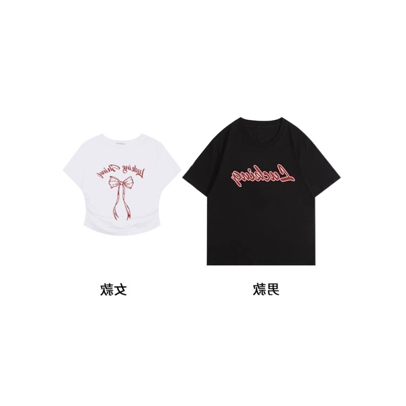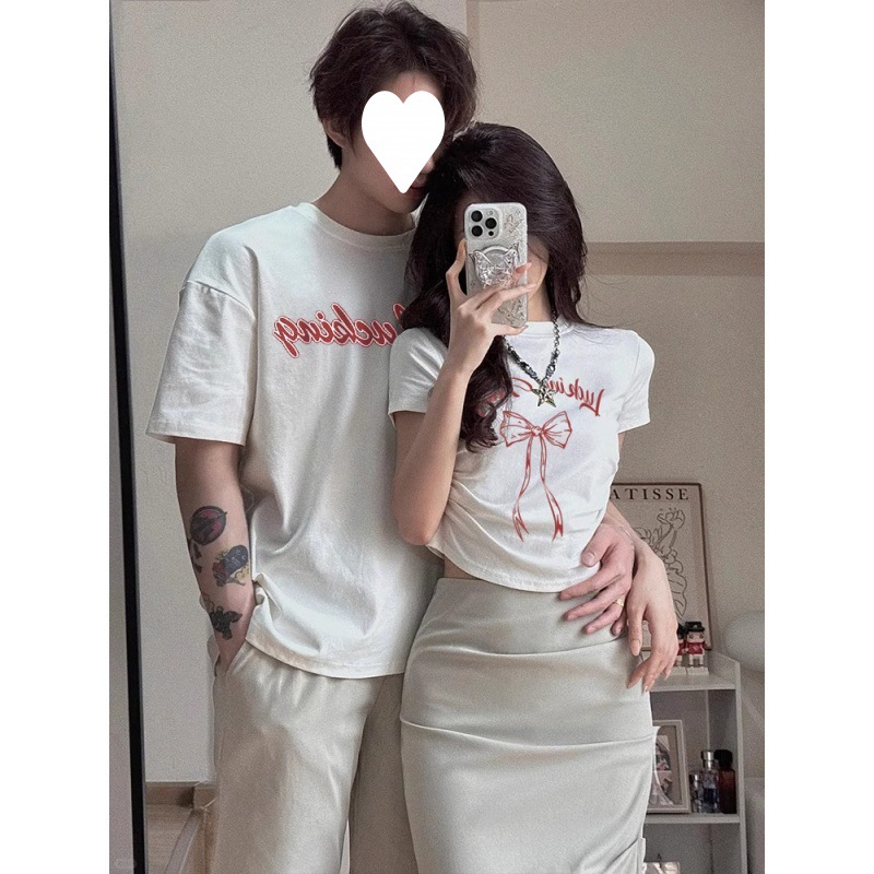 | nameOriginal | [250g Double Yarn -220g Combed] Pure Cotton Special Net Red Couple Niche Bow Short Sleeve T-shirt |