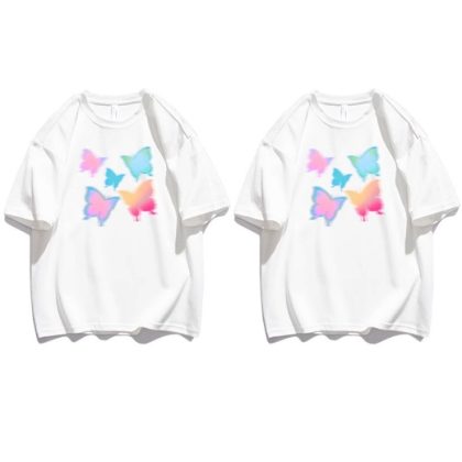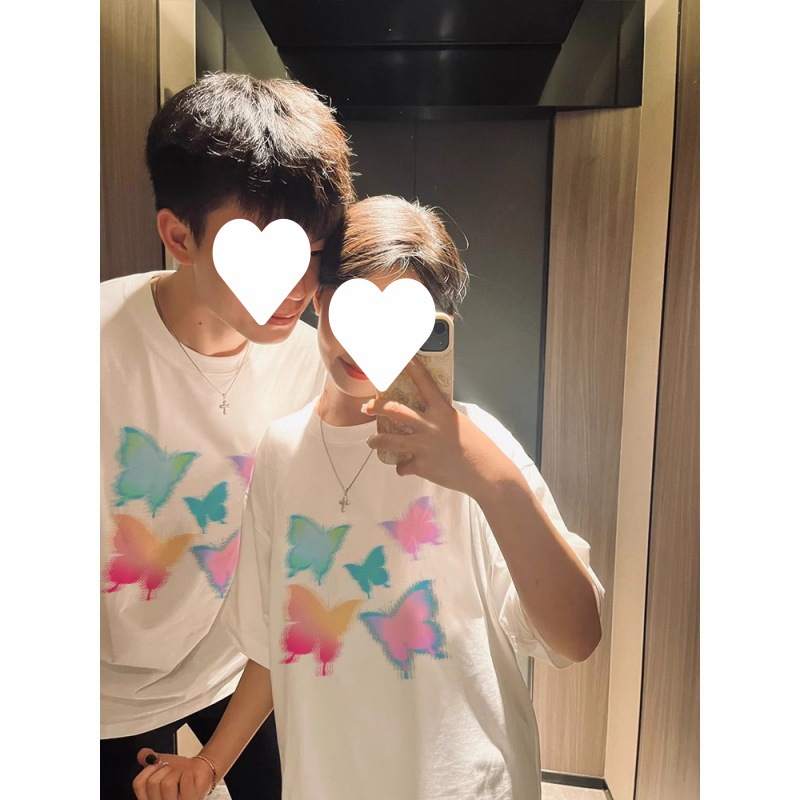 | nameOriginal | [250g double yarn -220g combed] pure cotton sweethearts outfit 2024 net red butterfly loose short sleeve T-shirt summer |
