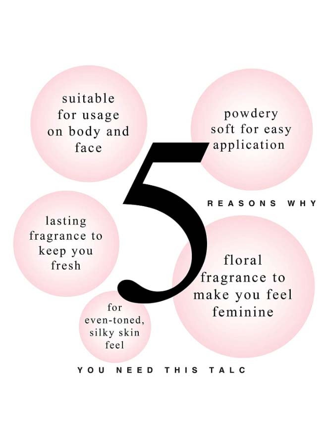 Indulge in the luxurious and romantic fragrance of our Perfumed Talc. This 250g talcum powder is delicately scented with a captivating blend of floral and musky notes, perfect for adding a touch of elegance to your daily routine. The silky smooth texture of the talc glides effortlessly onto your skin, leaving it feeling soft, refreshed, and delicately perfumed. Ideal for use after a shower or bath, or as a finishing touch before a special occasion, our Romantic Perfumed Talc is a must-have addition to your beauty collection. Treat yourself or a loved one to the ultimate pampering experience with this exquisite talcum powder.
