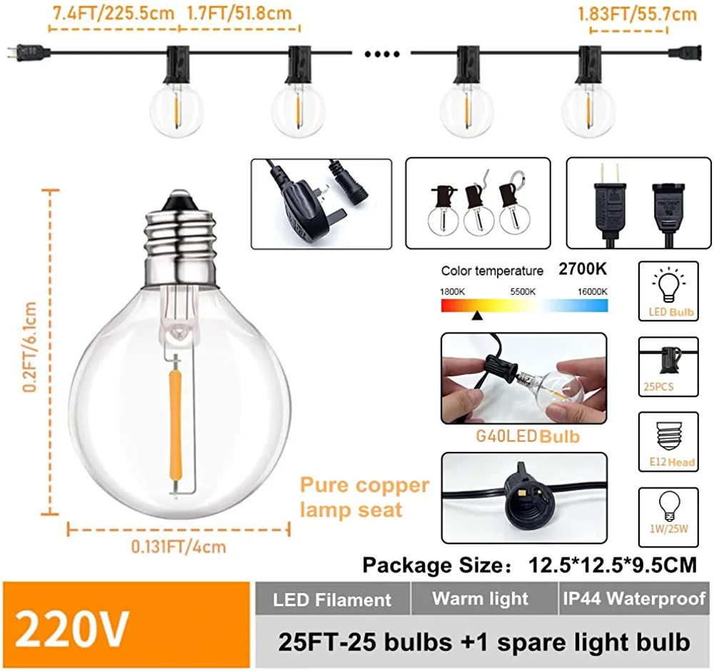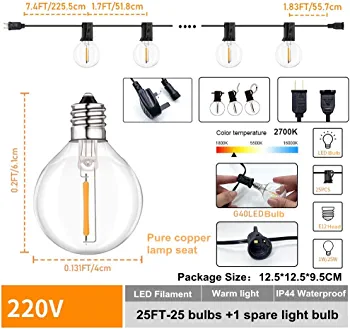 The outdoor globe lights 25 ft can be end to end connection seamless and max link up to 40 strands. Meet your different length needs and fit for any occasion.
