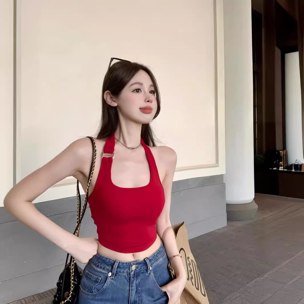 | nameOriginal | 2636# Sexy Neck-hanging Red Camisole Vest Spice Girls Backless Sleeveless Navel Bottoming Short with Chest Pad |