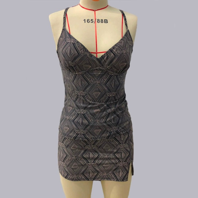 | nameOriginal | 267191 cross-border hot sale geometric line printing cross backless split swimsuit sexy skirt suit women |
