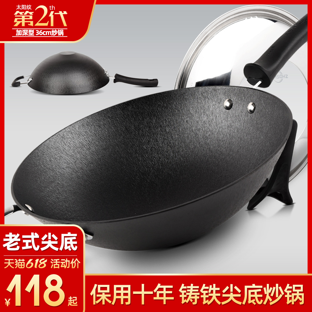 | nameOriginal | 26X8 pointed bottom old-fashioned iron wok cast iron wok household wok pig iron non-stick pan non-coated gas stove dedicated |
