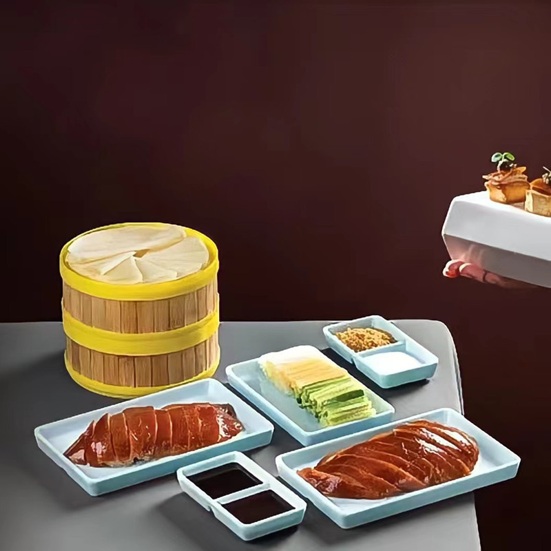 | nameOriginal | 26X8 simple Chinese style cyan ceramic melamine rectangular flat plate compartment dipping dish Beijing roast duck special tableware wine |