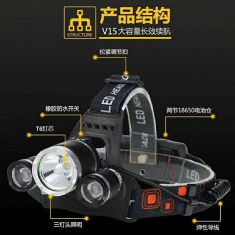 | nameOriginal | 28.8 a set of free shipping three-head lamp strong light charging long-range head wearing LED miner's lamp headlight fishing |