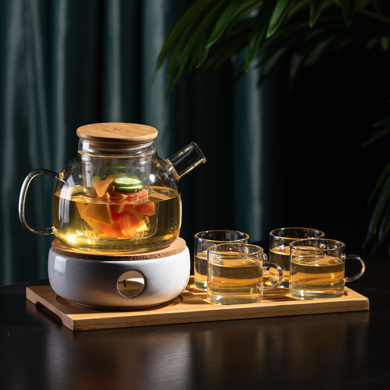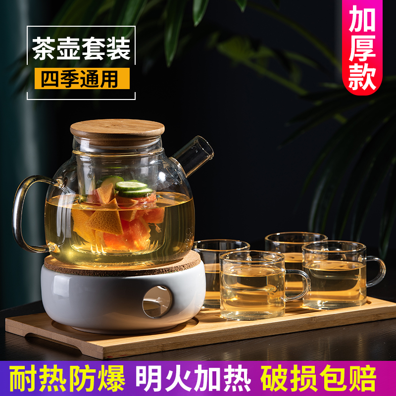 2TCU ancient ceremony tea brewing fruit glass flower teapot tea set suit Japanese transparent candle heated boiled flower