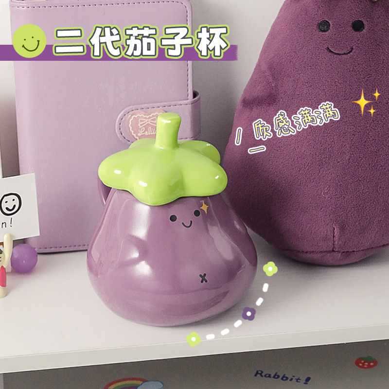 | nameOriginal | 2TCU eggplant Cup Pier Cup purple water Cup couple funny cute mug ceramic tea cup with lid gift  |