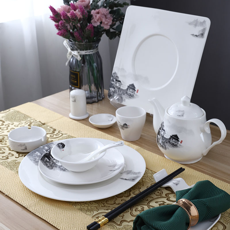 | nameOriginal | 2TCU hotel table decoration tableware suit restaurant four-piece bone dish bowl restaurant box farmhouse Chinese ink painting |