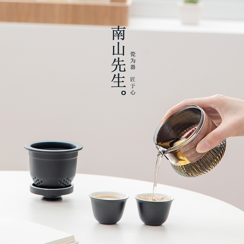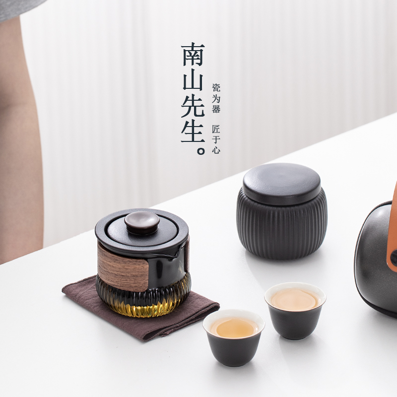 2TCU Mr. Nanshan travel tea set suit accompanying Express Cup One Pot Two Cups personal outdoor portable storage bag